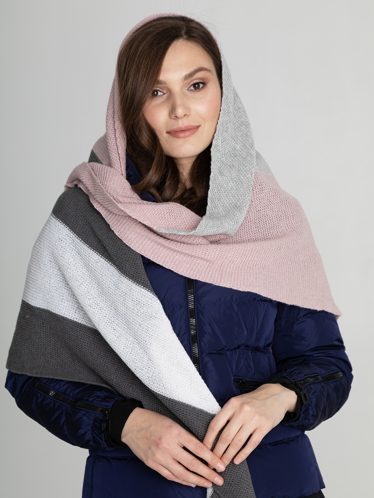 Косынка из смесовой шерсти с добавлением кашемира приятна на ощупь и хорошо сохраняет тепло. Универсальная базовая модель легко сочетается с различными нарядами.