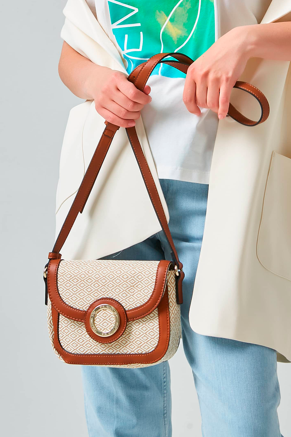 Сумка с несколькими внутренними отделениями как на молнии, так и без. Снаружи дополнительный карман на молнии. Застежка на магнитную кнопку. Фиксированный регулируемый плечевой ремень. Габаритные размеры: 150x200x60мм