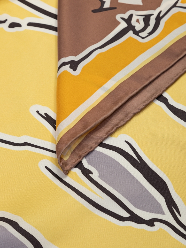 Состав: 100% шелк, твил. Тип подгибки: ручная подгибка на лицевую сторону. Размер: 90х90см.
