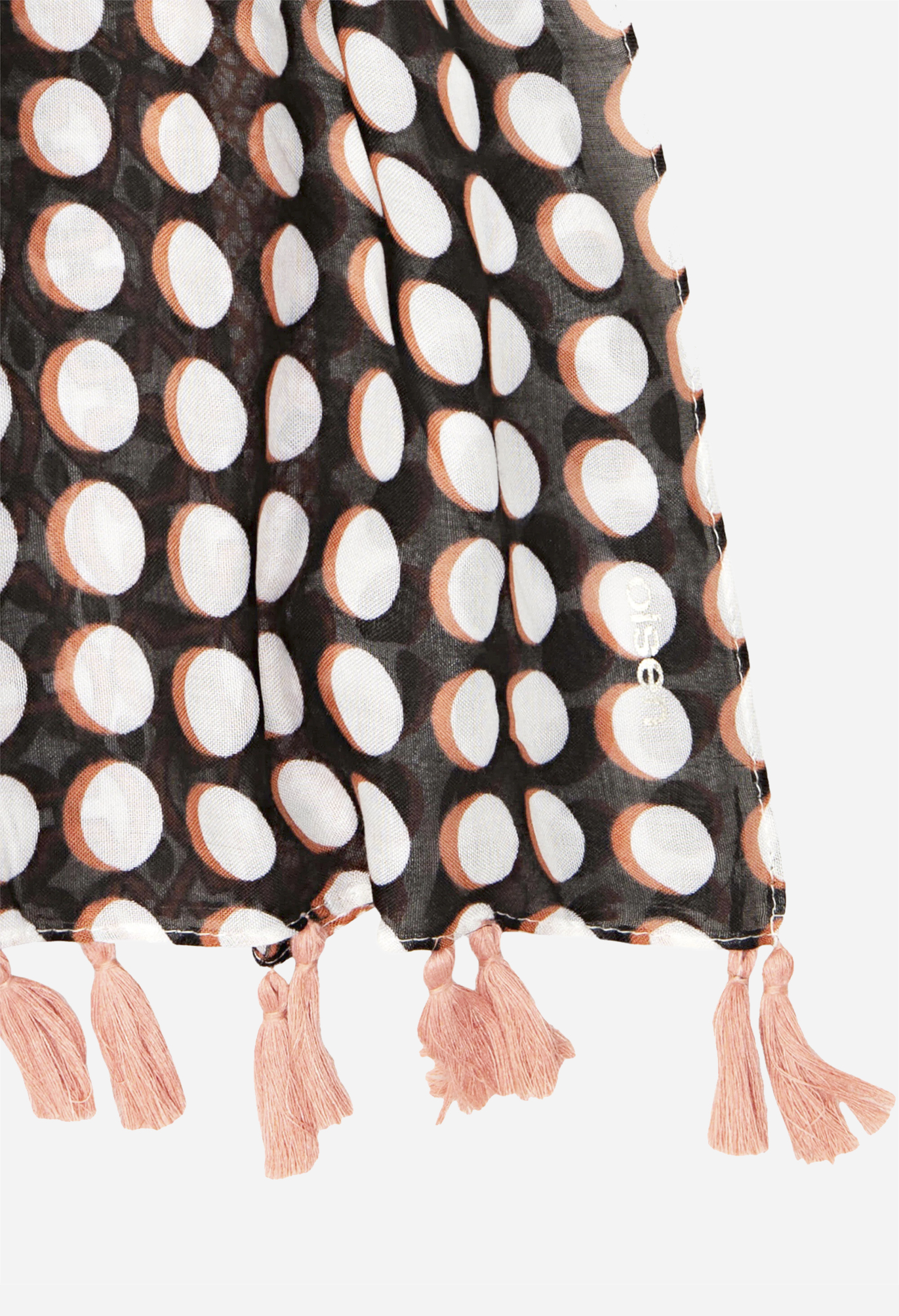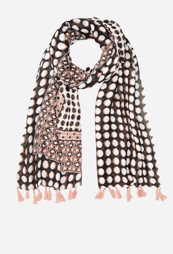 Легкий шарф с ярким горохом и геопринтом идеально подходит для завершения нейтрального образа.