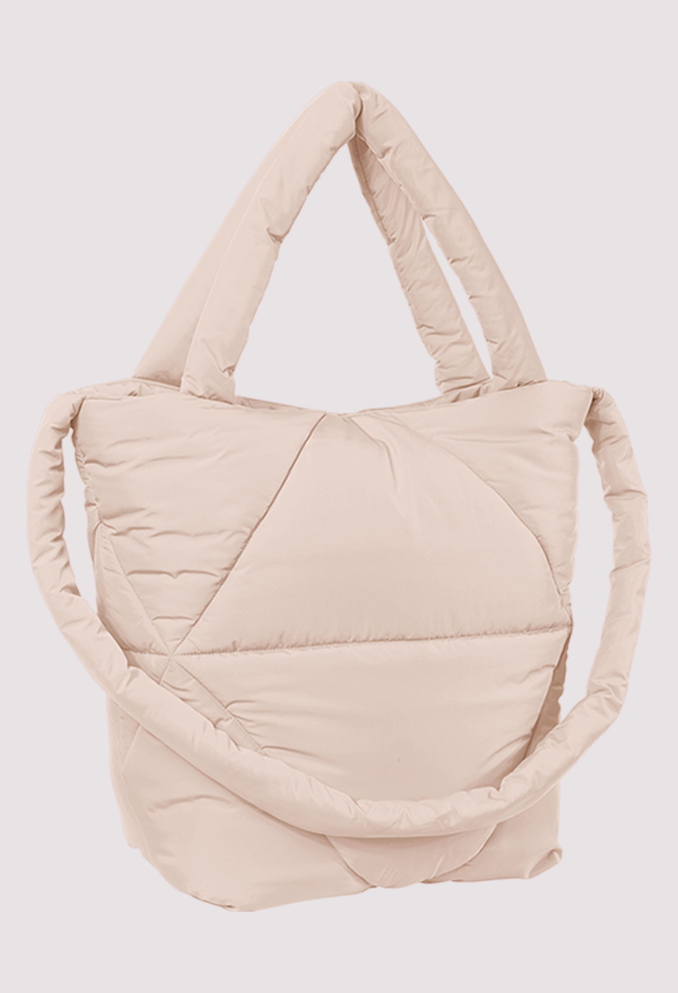Сумка из лоскутное шитья — актуальная тема в мире моды. Это не ограничивается только куртками или пальто, такие аксессуары, как эта крутая сверхлегкая сумка, также сделаны из любимого объемного материала. Великолепная приманка для нашего образа, которая теперь также доступна в последних весенних цветах.