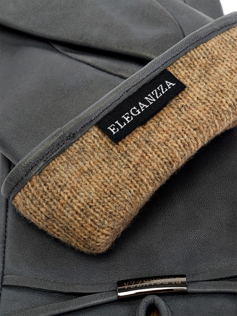 Перчатки выполнены из кожи ягнёнка. Подкладка: 100% шерсть. Декоративные элементы - фирменная фурнитура на узких кожаных ремнях. Нижний край перчатки и разрез на лицевой стороне окантованы. Длина манжеты от нижней точки большого пальца до края перчаток - 6 см.