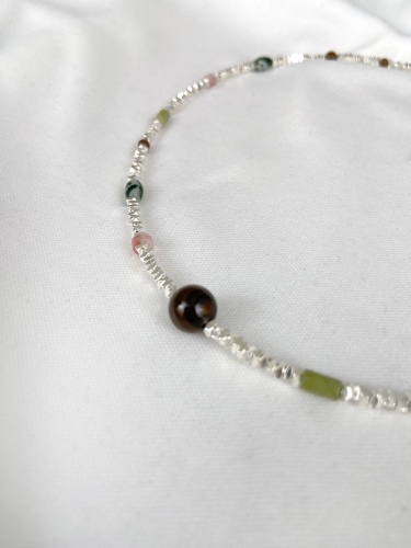 Элегантное колье с использованием искусственного разового кварца с регулируемой застёжкой, станет изысканным акцентом любого наряда.