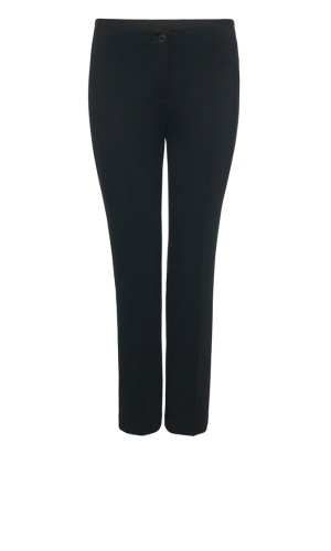 Стильные укороченные брюки. Средняя посадка, прямой крой, стрелки, застежка-молния. Приятный к телу материал из вискозной смеси. Эта базовая модель прекрасно комбинируется с различными вариантами верха и обуви.