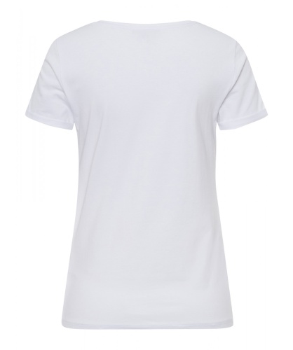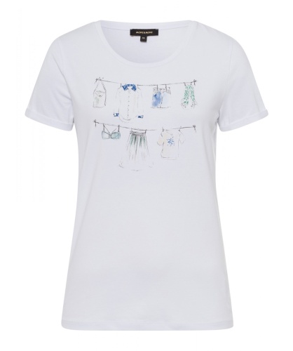 Базовая белая футболка с забавным принтом. Овальный вырез горловины, короткий втачной рукав.