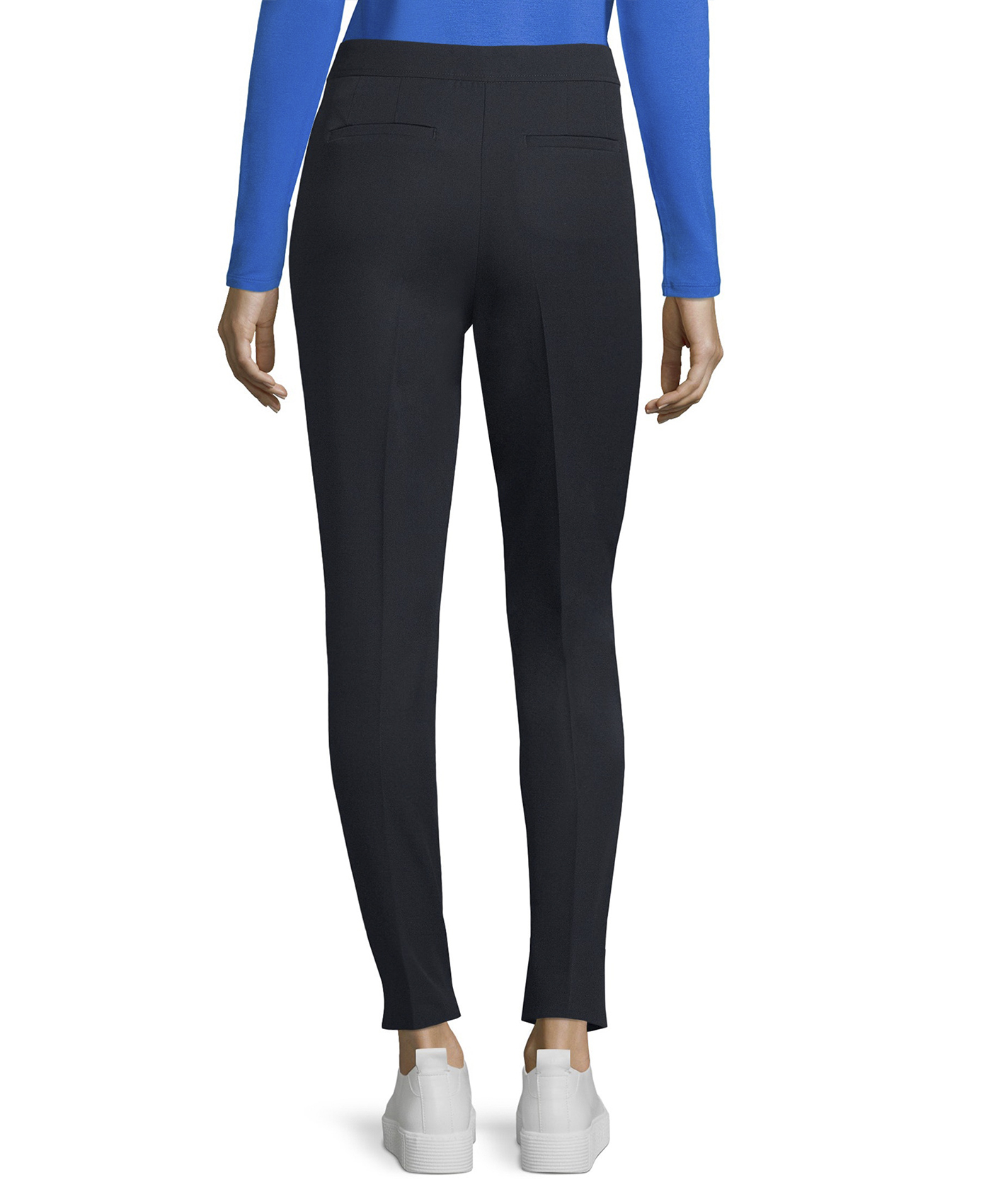 Брюки со стрелками - современная классика! Прямой покрой, средняя посадка. Материал из смеси полиэстера, вискозы и эластана приятен к телу. Эти брюки позволяют создать множество стильных образов с различными вариантами верха и обуви.