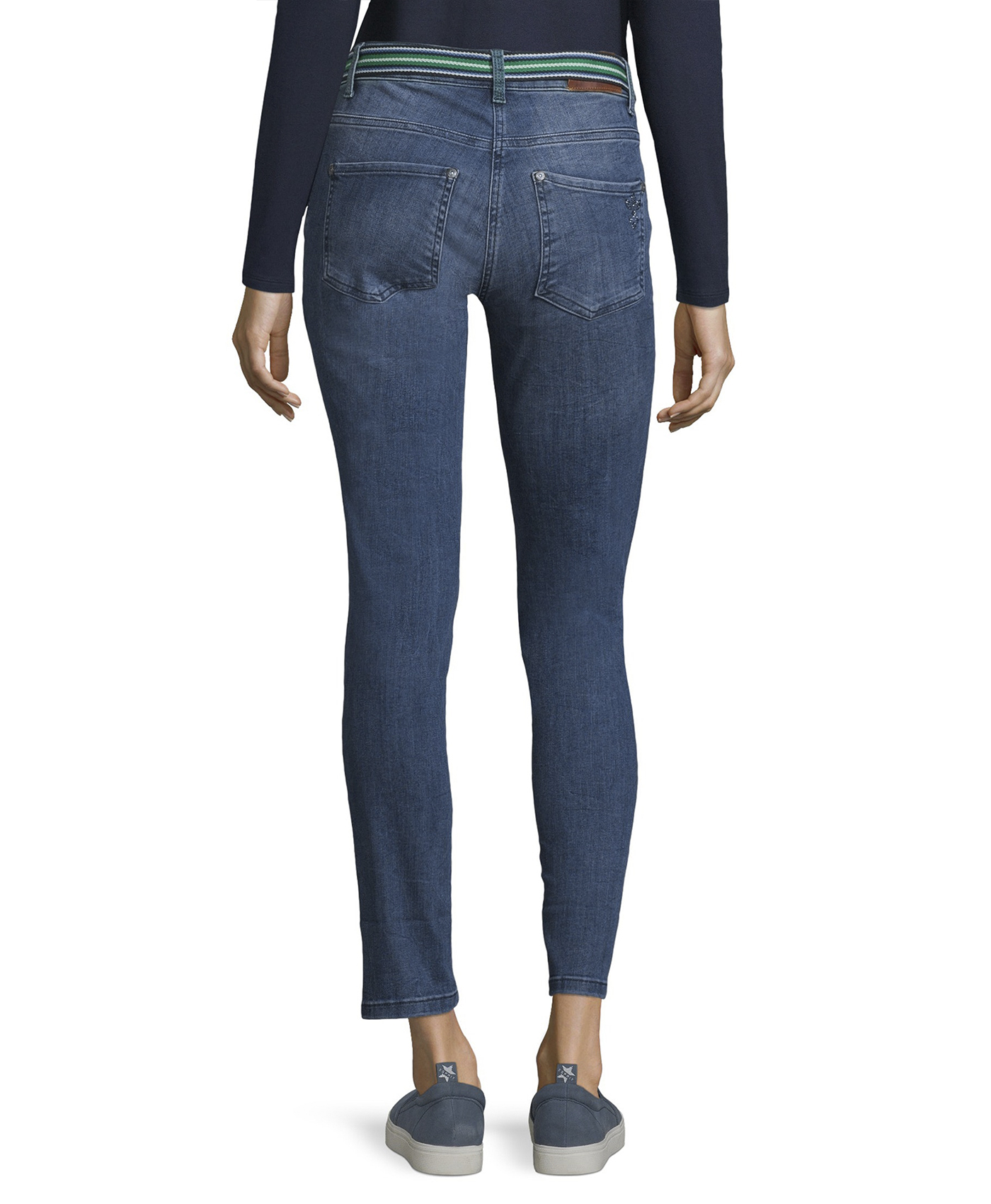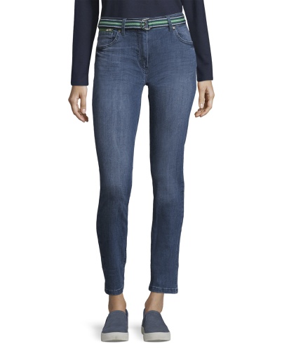 Джинсы силуэта slim подчеркивают стройные ноги. Классическая средняя посадка. Стильные джинсовые потертости. Материал из хлопковой смеси приятен к телу и обеспечивает комфорт. Эти джинсы - изюминка стиля кэжуал, в комплекте с ними можно создать множество современных образов.