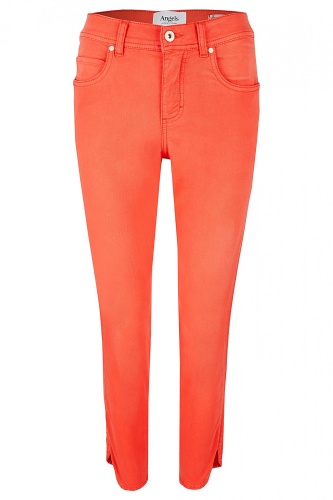 Яркий цвет укороченных брюк создает летнее настроение. Брюки средней посадки, силуэт slim подчеркивает стройные ноги. 5 карманов. Фигурная линия нижнего среза. Материал из хлопковой смеси приятен к телу и обеспечивает комфорт. Эти брюки - стильный акцент вашего летнего образа!