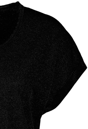 Черная футболка полуприлегающего силуэта – базовая вещь в гардеробе любой женщины. Универсальный вариант на повседневность. Круглая горловина, короткий цельнокроеный рукав.