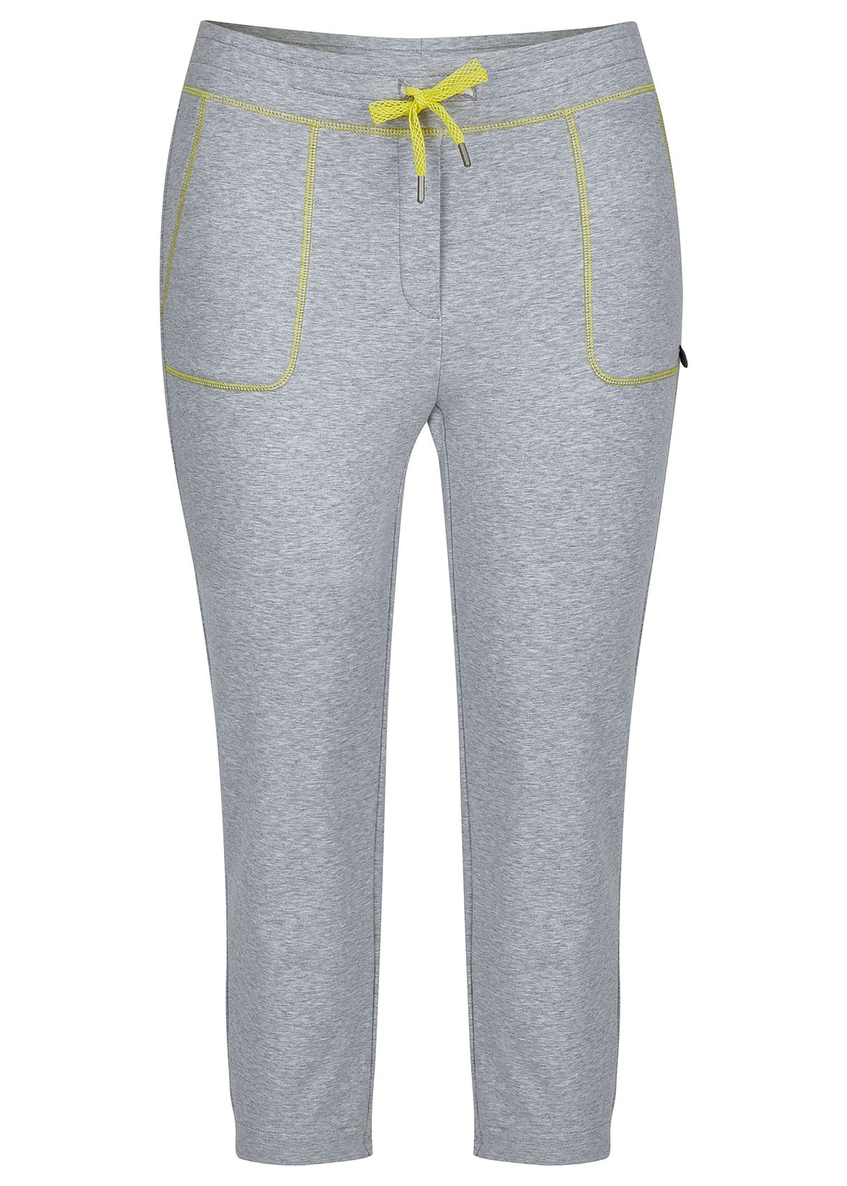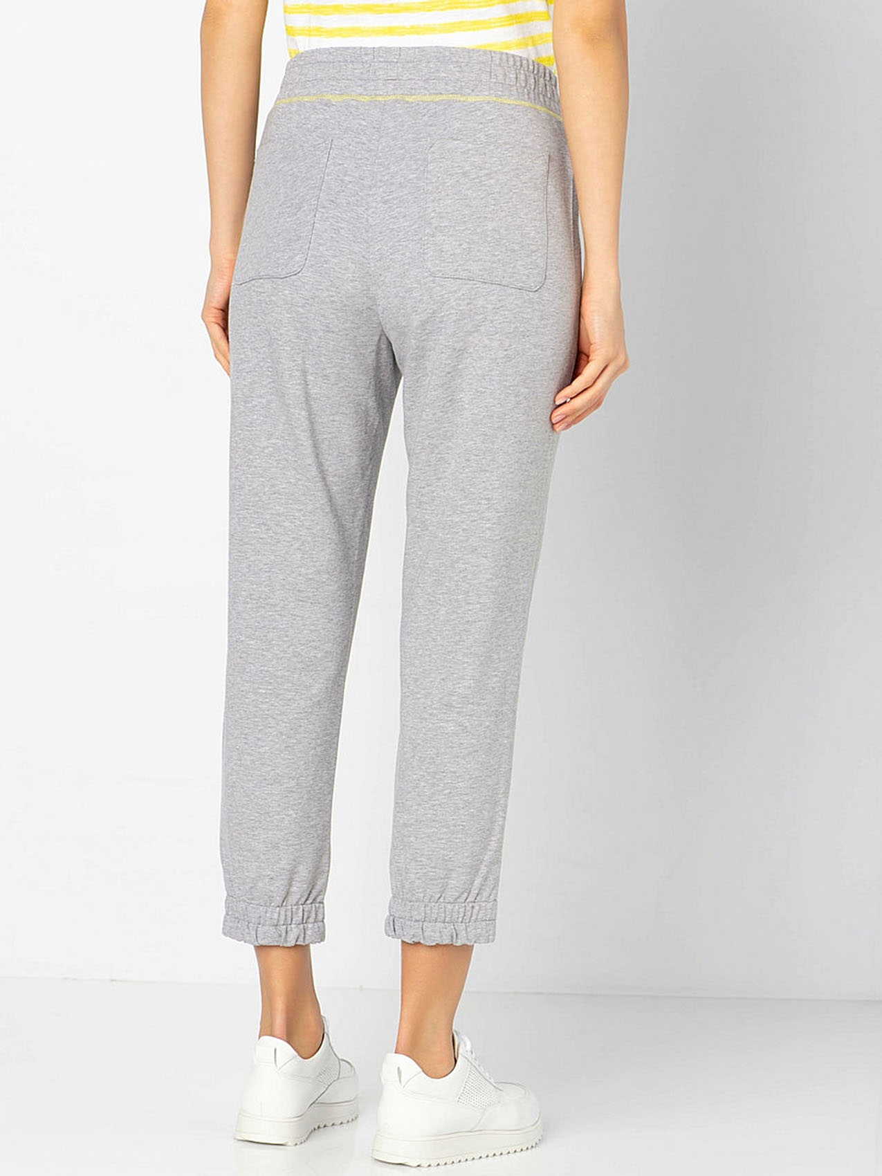 Укороченные спортивные брюки без утепления. Средняя посадка. Эластичная лента на поясе. Прорезные карманы. Яркая декоративная отстрочка. Приятный к телу материал из смеси хлопка и эластана. Длина изделия по внутреннему шву: 73 см.