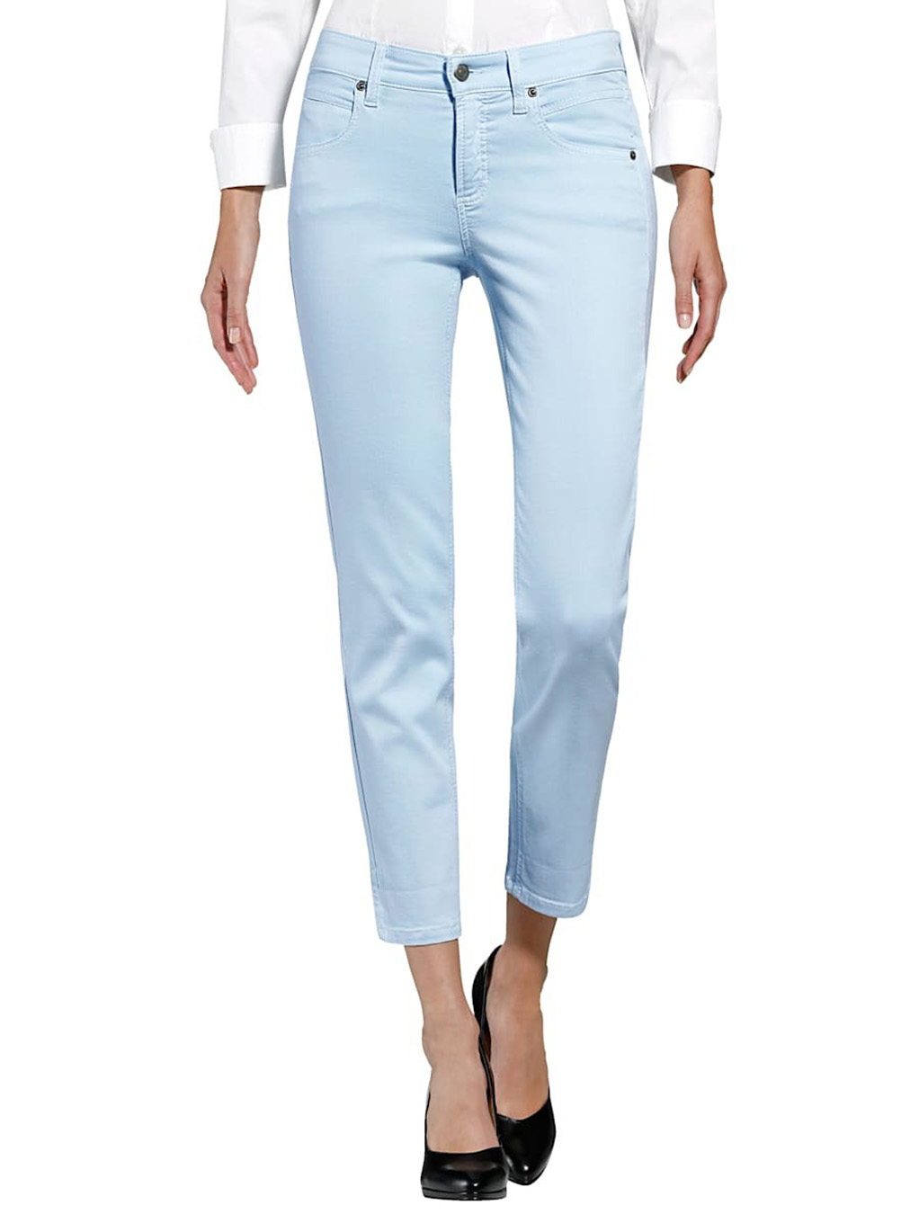 Укороченные брюки светлого оттенка - отличный летний выбор! Средняя посадка, силуэт slim подчеркивает стройные ноги. Застежка-молния спереди, карманы. Приятный к телу материал из хлопковой смеси обеспечивает комфорт. Эта лаконичная модель гарантирует создание бесчисленного множества модных комплектов.