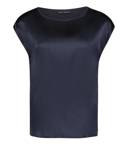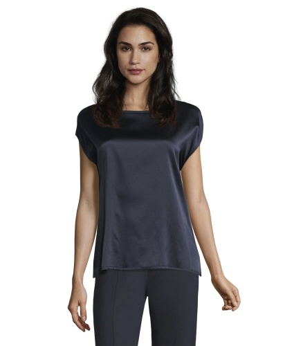 Однотонный топ - базовая модель, которая является обязательной вещью в любом гардеробе. Топ прямого покроя с вырезом-лодочкой и короткими цельнокроеными рукавами. Блестящий атласный перед изделия контрастирует с матовой спинкой. Материал из смеси шелка и эластана обеспечивает комфорт и идеально подходит для теплого времени года. В этом лаконичном и элегантном топе вы будете выглядешь шикарно, независимо от выбранного варианта низа и обуви.