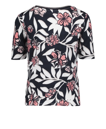 Цветочный принт - непреходящий тренд! Прямой покрой, круглый вырез горловины, рукава 1/2. Вискозная смесь приятна к телу и обеспечивает комфорт. Эта футболка идеально сочетается с любым однотонным низом и обувью.