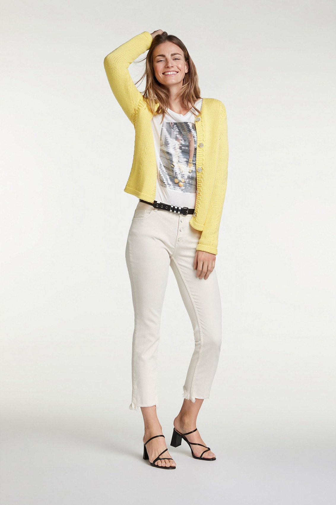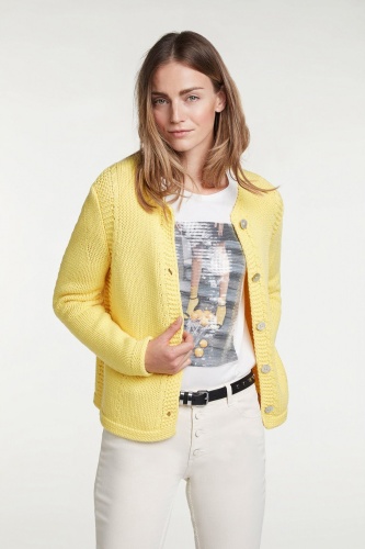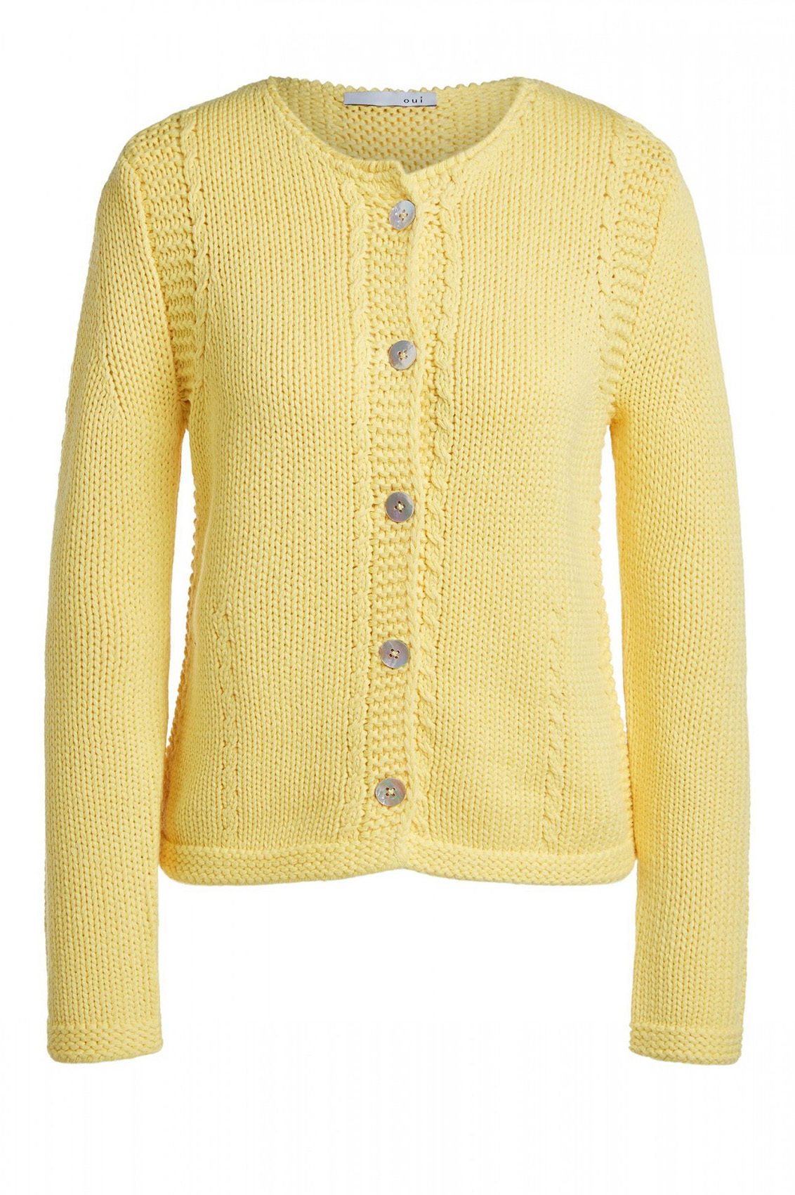 Яркий кардиган непременно обратит на себя внимание! Прямой покрой, длинные рукава, застежка на пуговицах. Крупная вязка с косами. Приятный к телу материал из смеси хлопка и полиакрила. Этот кардиган - модная теплая вещь, необходимая в любом гардеробе.
