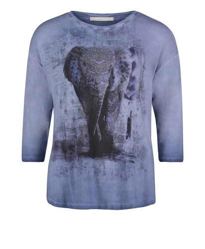 Футболка прямого покроя. Рукава 3/4 со спущенным плечом. Принт с изображением слона. Материал из смеси вискозы и эластана приятен к телу и обеспечивает комфорт. Футболка создает непринужденный образ в стиле кэжуал.