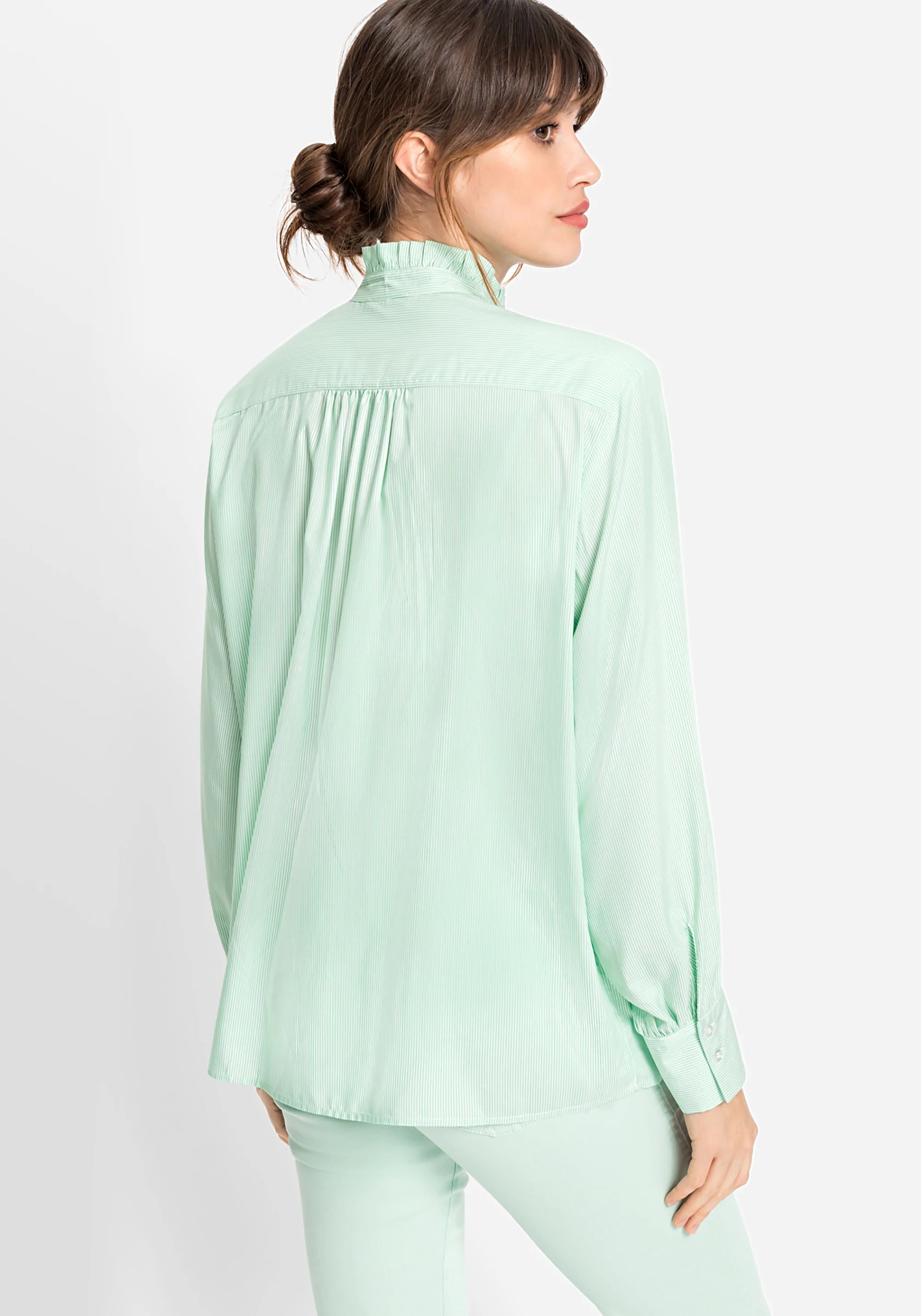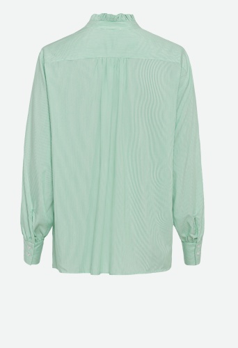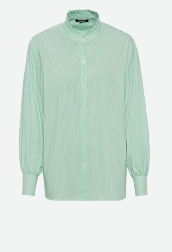 На сайте указаны Российские размеры. Легкая блузка с защипами и рюшами. По центру спины дополнена защипами, что обеспечивает непринужденную свободную посадку.