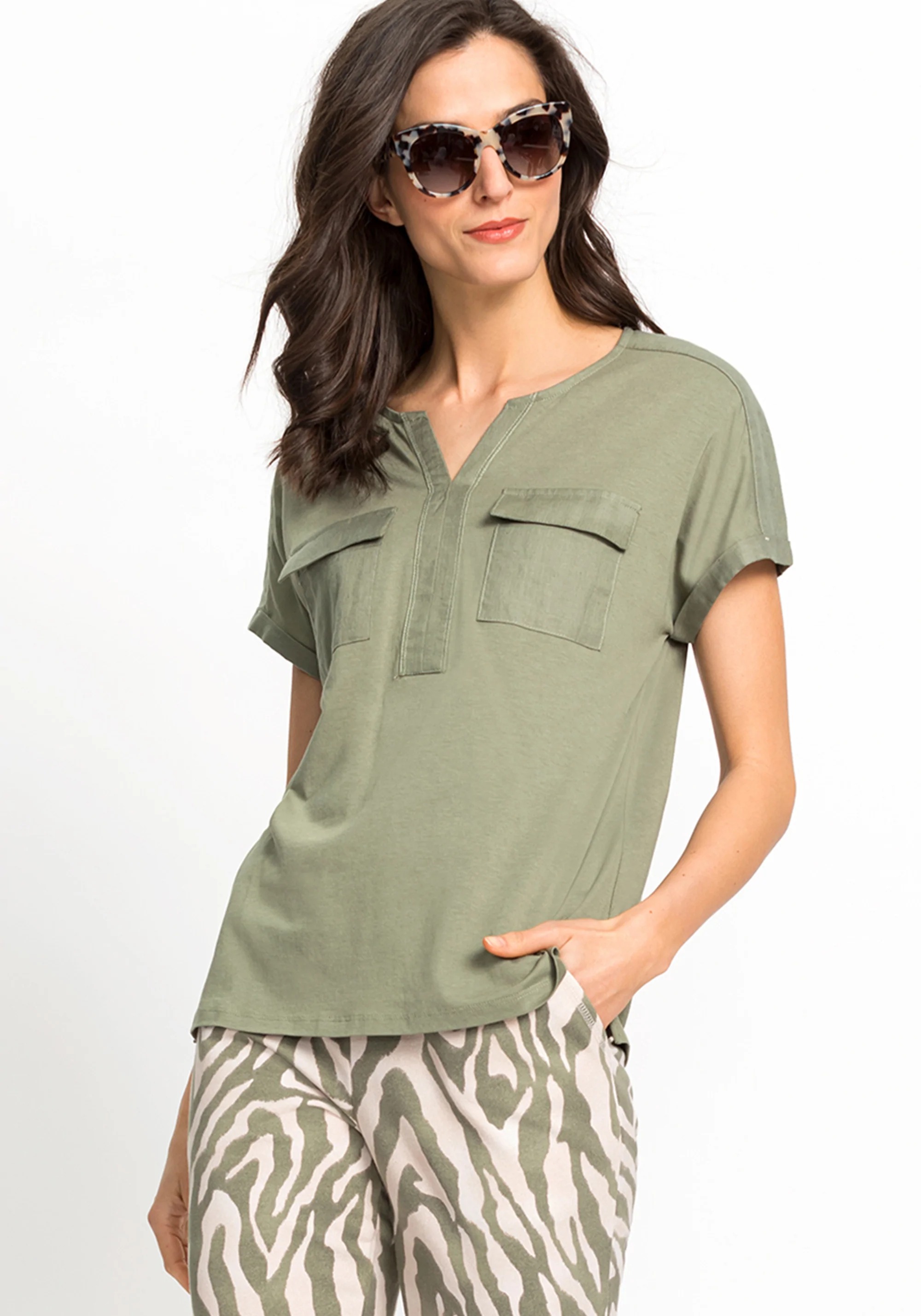 Эта модель OLSEN идеальная альтернатива вашей классической блузке! Вырез туники и закатанные рукава идеально подходят как для работы, так и для отдыха. Рубашка более широкого кроя сидит свободно и красиво сидит на фигуре. Два нагрудных кармана с клапанами дополняют стильный образ.