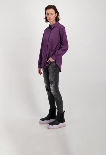 На сайте указаны российские размеры. Однотонная блуза-рубашка от monari. Стильная модель, которая вам понравится благодаря длинным рукавам с манжетами на пуговицах, длинному прямому крою с боковыми разрезами и удлиненному закругленному низу. Передняя часть имеет передний плечевой шов, накладной карман на уровне груди и планку на потайных пуговицах, а задняя часть украшена кокеткой с модной складкой. Рост модели 178 см Длина по спинке 44 размера составляет 79 см, а по переду – 74 см.