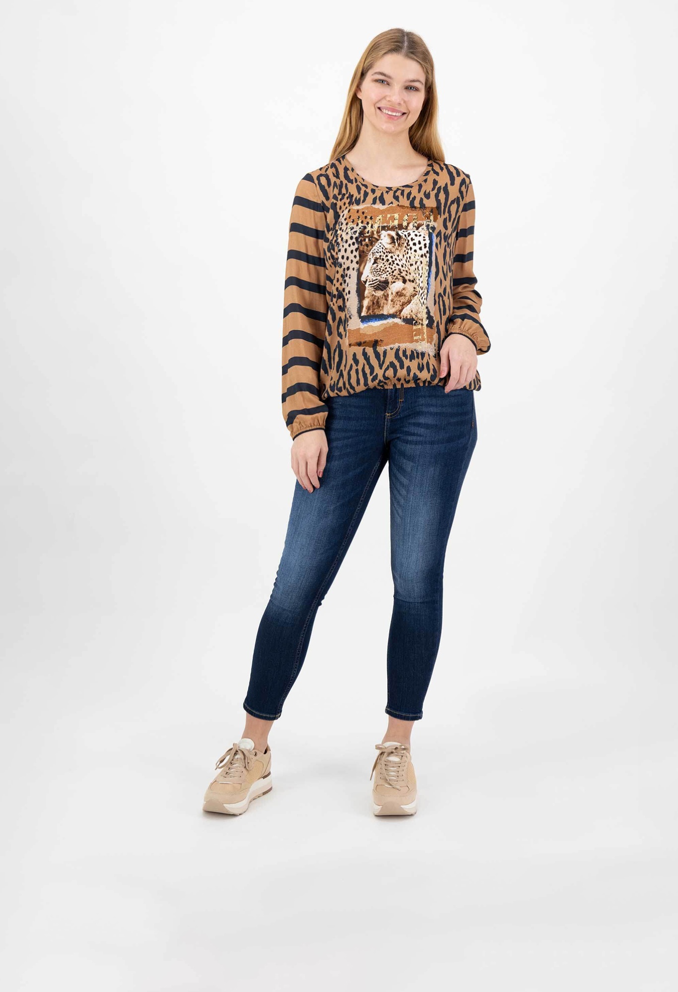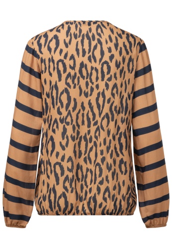 На сайте указаны российские размеры. Несложная, неподвластная времени, ценная - эти характеристики идеально описывают шикарную блузку-рубашку. Высококачественный материал придает рубашке максимальный комфорт и струящийся легкий вид. Захватывающий дизайн делает эту рубашку модной вещью. Практичная резинка по низу и на рукавах обеспечивает идеальную посадку рубашки и сохраняет ее повседневную посадку. Наша модель ростом 177 см. Измерения для размера 44: Окружность груди: 104 см Талия: 103 см Бедра: 114 см Длина по спинке: 62 см. Длина рукава: 62 см.
