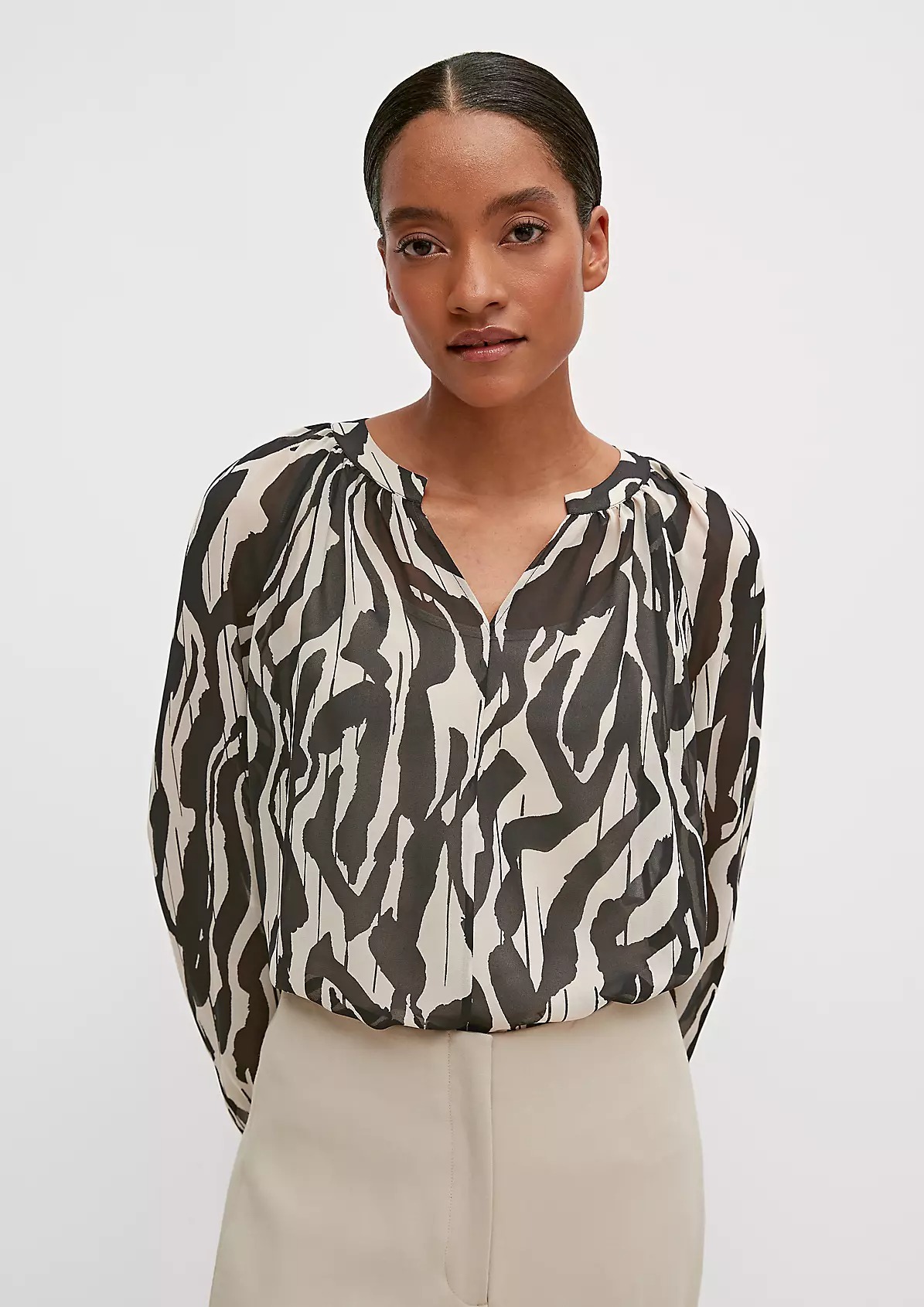 На сайте указаны российские размеры. Легкая блуза с анималистичным принтом и V-образным вырезом горловины. Длина спины 64 см в размере 42 Рост модели 177 см.
