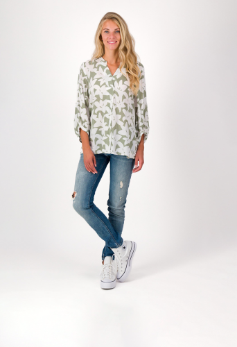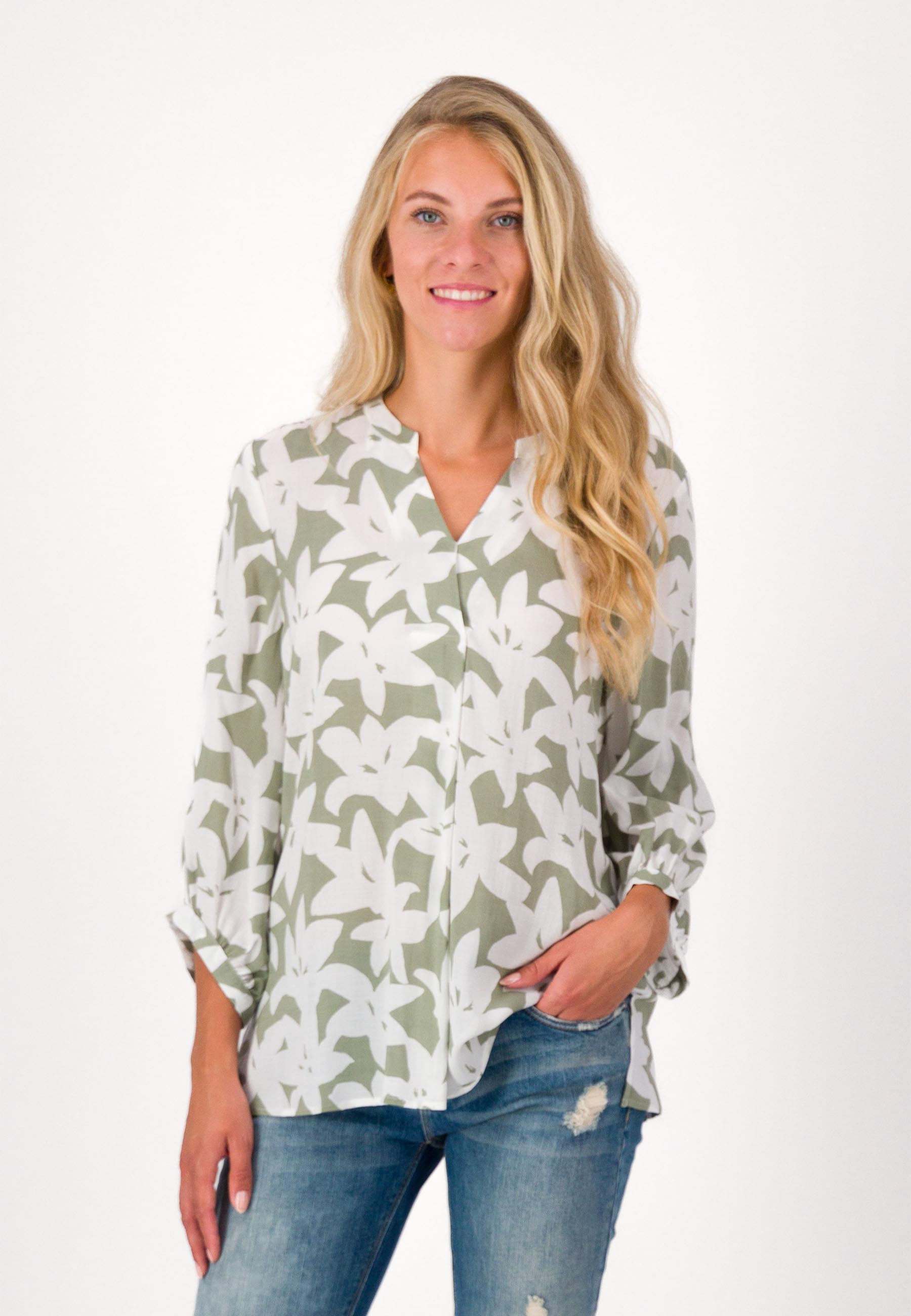 На сайте указаны российские размеры. Блузка в стиле туники — воздушный компаньон для более теплых температур. Женственные детали, такие как присборенные манжеты рукавов, придадут вам блеск. Круглый вырез горловины со встроенной складкой спереди особенно красив и идеально подходит для любой фигуры. Длина по спинке: 68 см. Рост модели: 177 см.