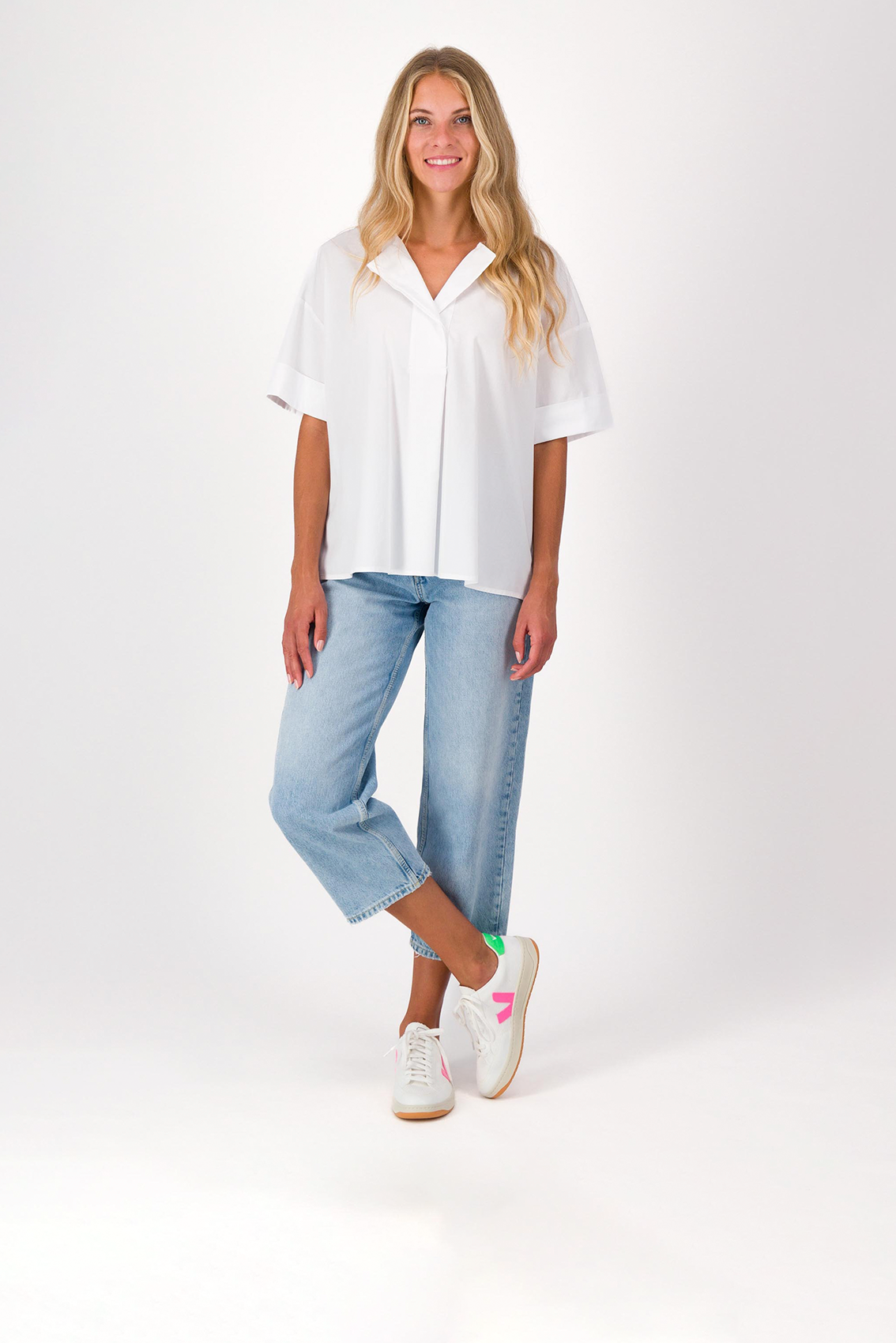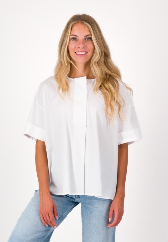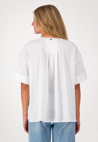 Летняя блузка изготовлена из органического хлопка и поэтому отличается не только высочайшим качеством, но и мягкостью и особенно приятной на ощупь. Планка с потайными пуговицами придает блузке элегантный вид, а тонкая складка сзади обеспечивает дополнительную свободу движений и привлекает внимание. Широкие манжеты рукавов придают блузке нотку изысканности, а красивая драпировка блузки создает женственный силуэт.
