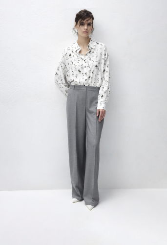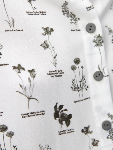 Свободная блуза из вискозной ткани с цветочным принтом. Блуза со спущенным плечом и манжетами. На спинке кокетка с бантовой складкой. Низ блузы округлый, спинка длиннее полочки.