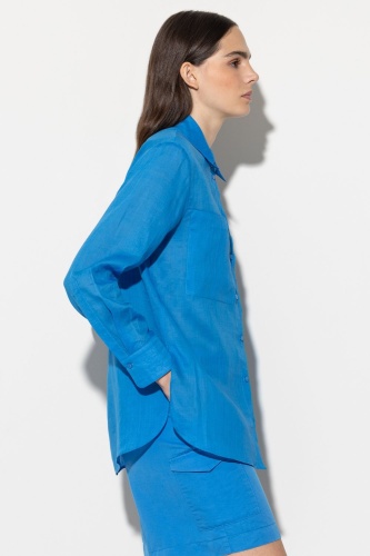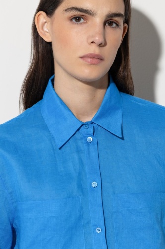 Блуза-рубашка повседневного кроя из прекрасного летнего рами. Блузка имеет два накладных нагрудных кармана и закругленный низ с разрезами по бокам.