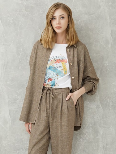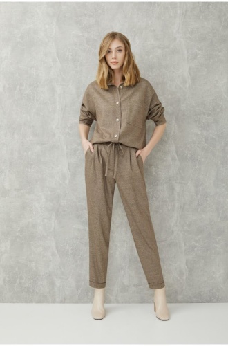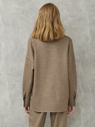 Однотонная блузка прямого кроя на пуговицах. Отложной рубашечный воротник, спущенная линия плеча. Свободный силуэт сглаживает недостатки фигуры и подчеркивает достоинства. Рубашку можно сочетать как с брюками из того же комплекта, так и с джинсами или юбкой.