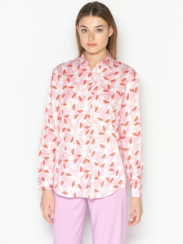 Блузка-рубашка привлекает к себе внимание благодаря необычному принту. Приталенный силуэт, отложной воротничок, застежка на пуговицах, длинные рукава с манжетами. Материал блузки обеспечивает удобство и комфорт в ношении. Эта блузка освежает любой образ!