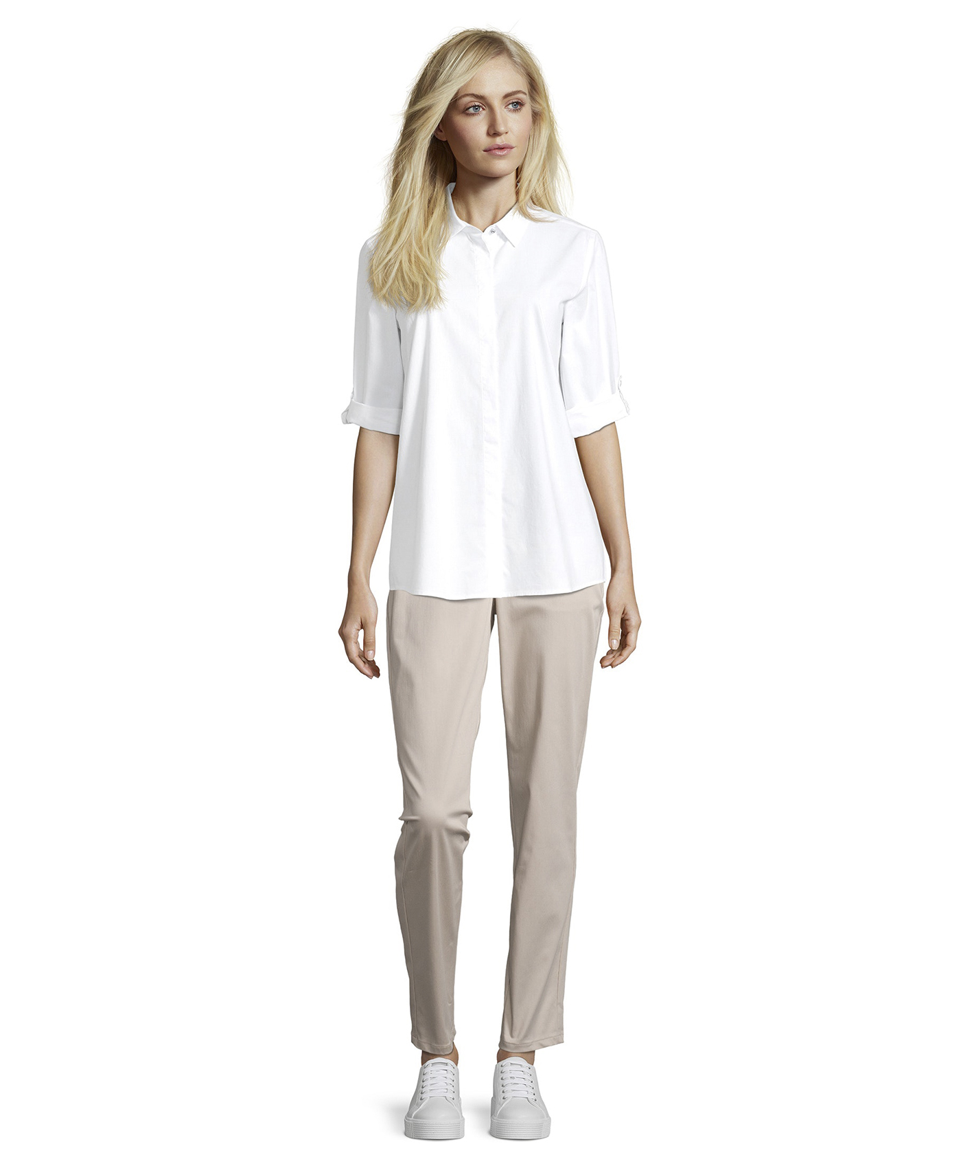Однотонная блуза - поистине универсальная модель! Модный свободный покрой. Отложной воротничок, застежка на пуговицах, рукава 1/2. Элегантная деталь дизайна - декоративные пуговицы, спрятанные в складке на спинке. Приятный к телу материал из хлопковой смеси. В пару к этой лаконичной блузе можно подобрать практически любой вариант низа, что допускает множество модных сочетаний.