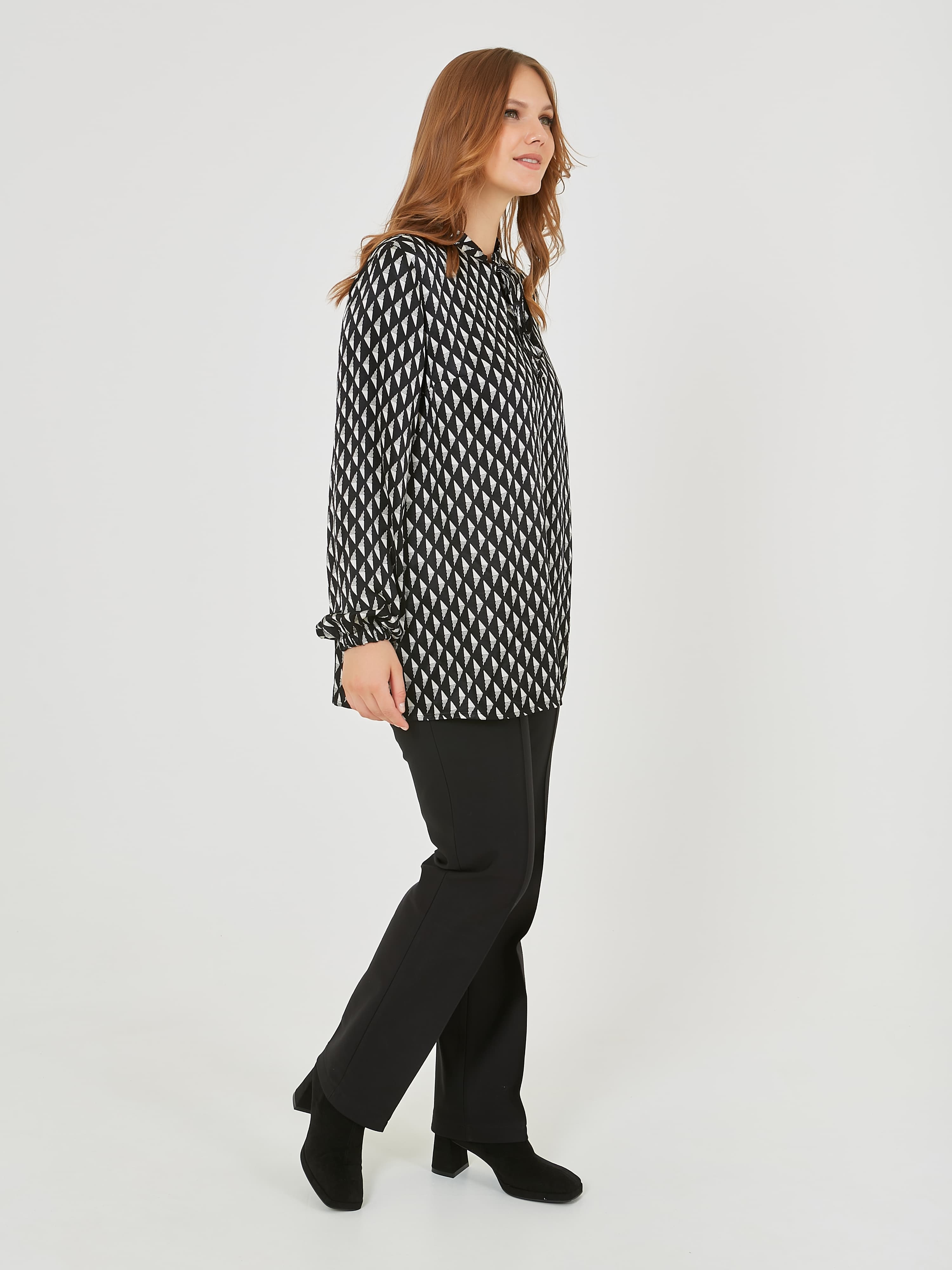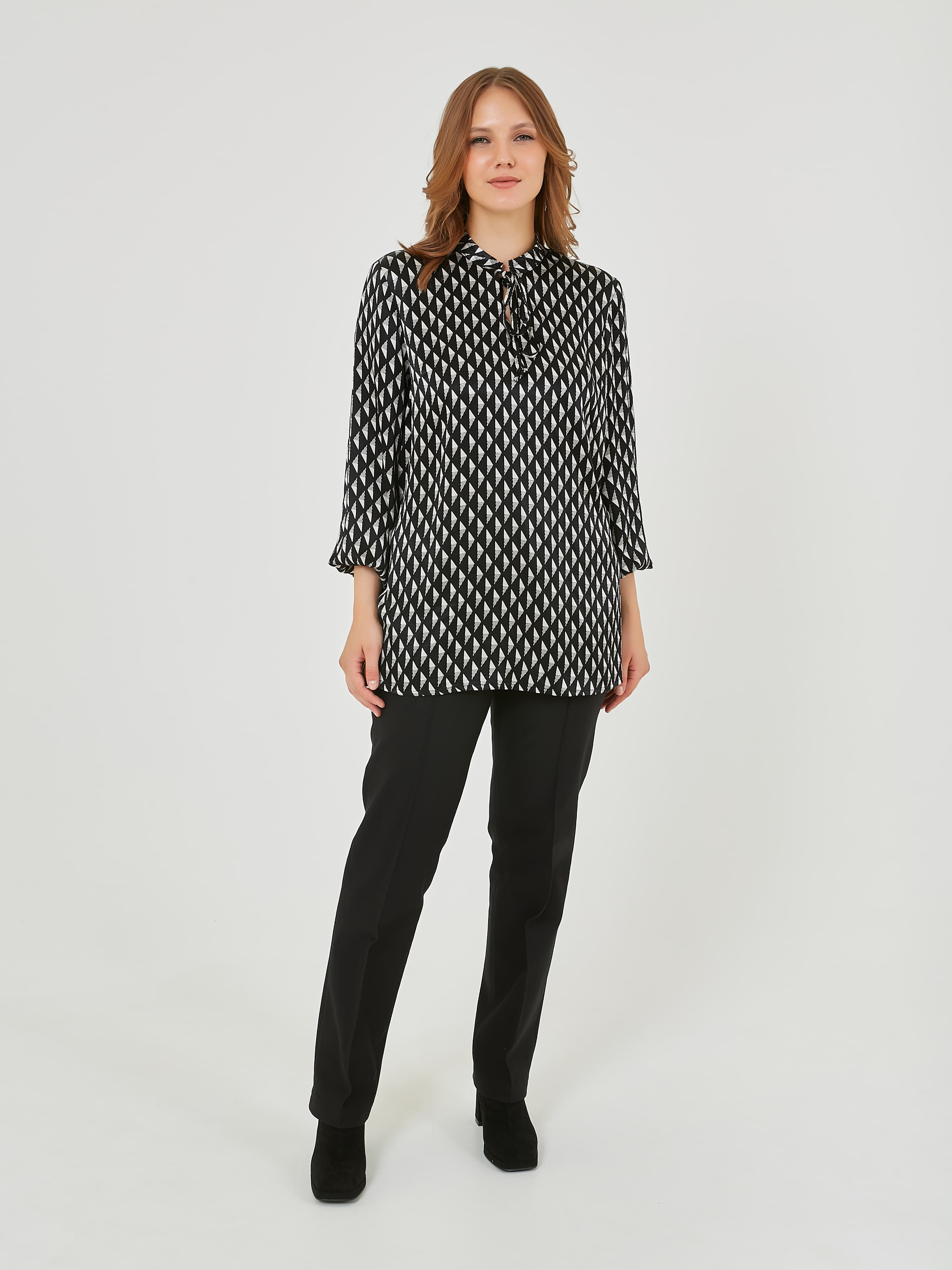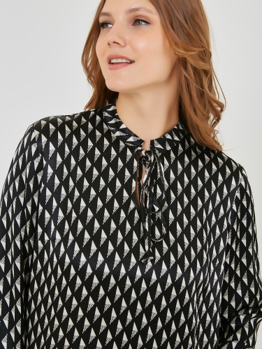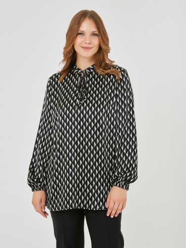 Блуза из вискозы с геометрическим принтом свободного кроя. Коллекция Осень-Зима 2024-2025. Капсула "Амели".