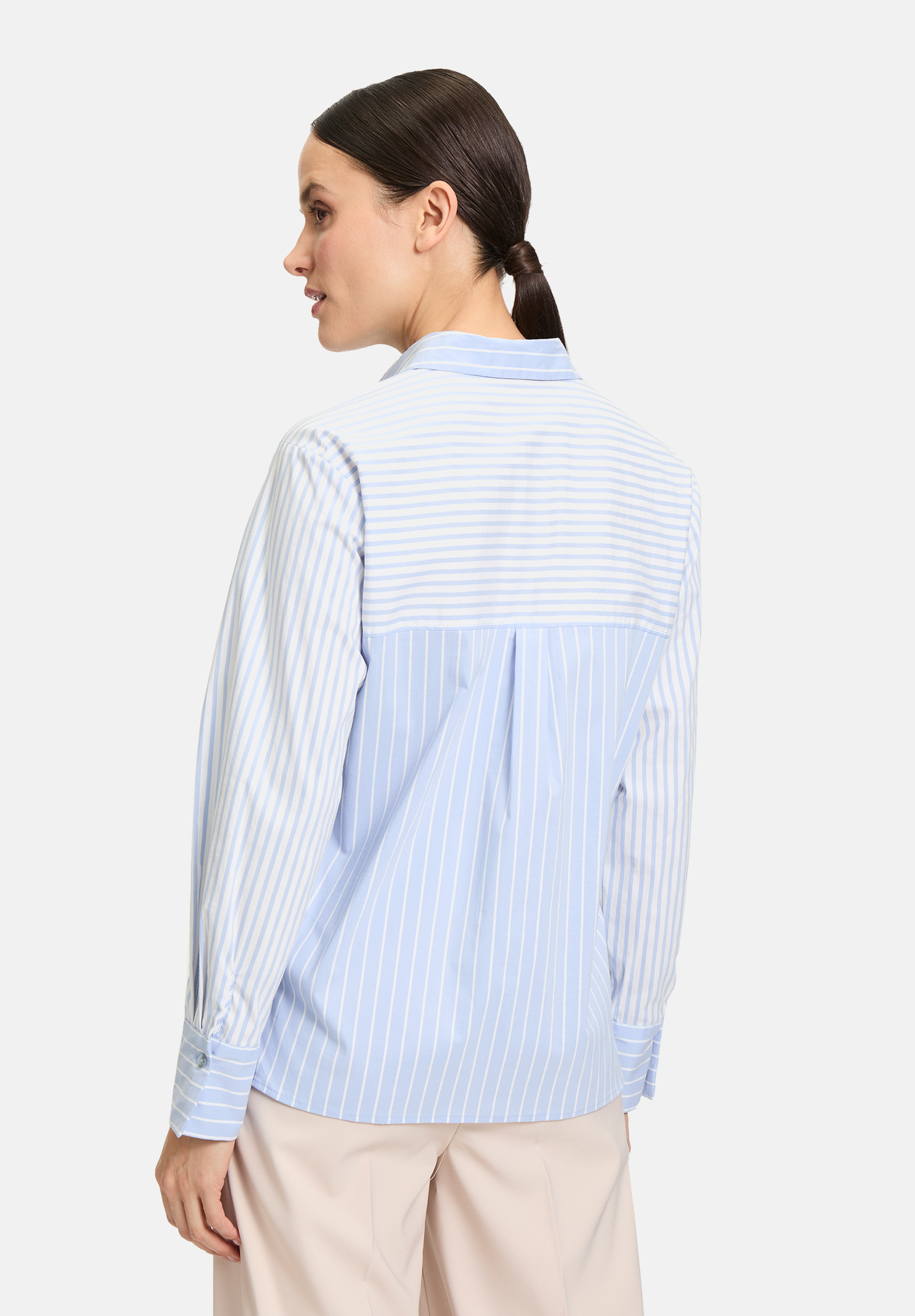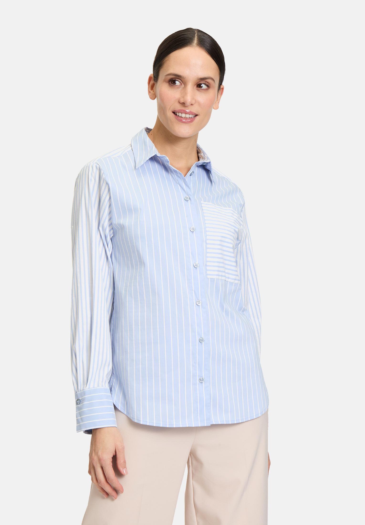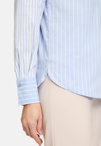 Повседневная блузка-рубашка с длинными рукавами и рубашечным воротником привнесет классический шарм в ваш гардероб. Полосатый рисунок придает блузке свежий, неподвластный времени вид, а свободный крой обеспечивает комфорт и непринужденную посадку. Блузка дополнена практичной планкой с пуговицами, которая завершает дизайн. Эта блузка придаст вашему образу непринужденную элегантность.
