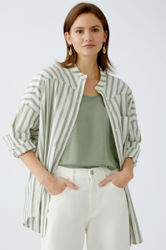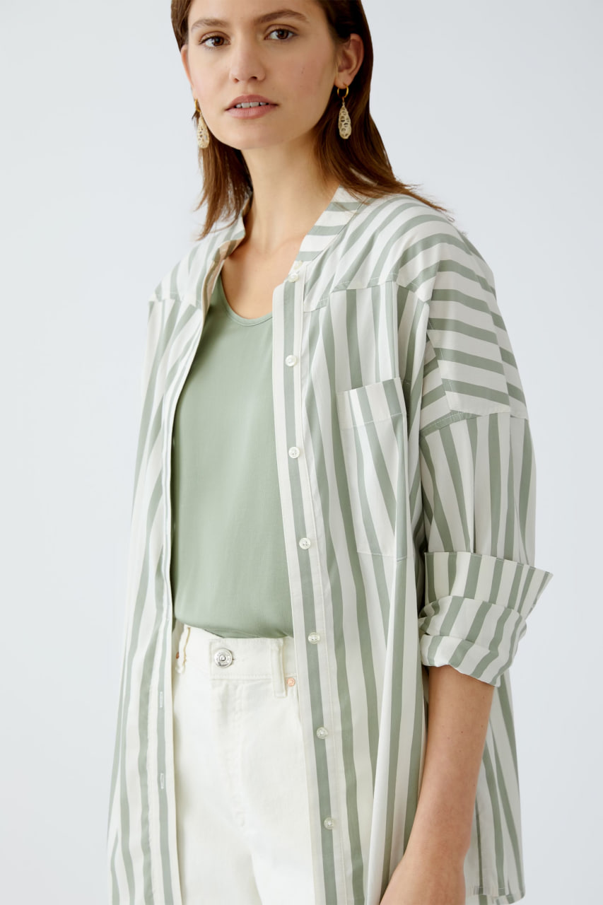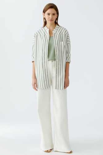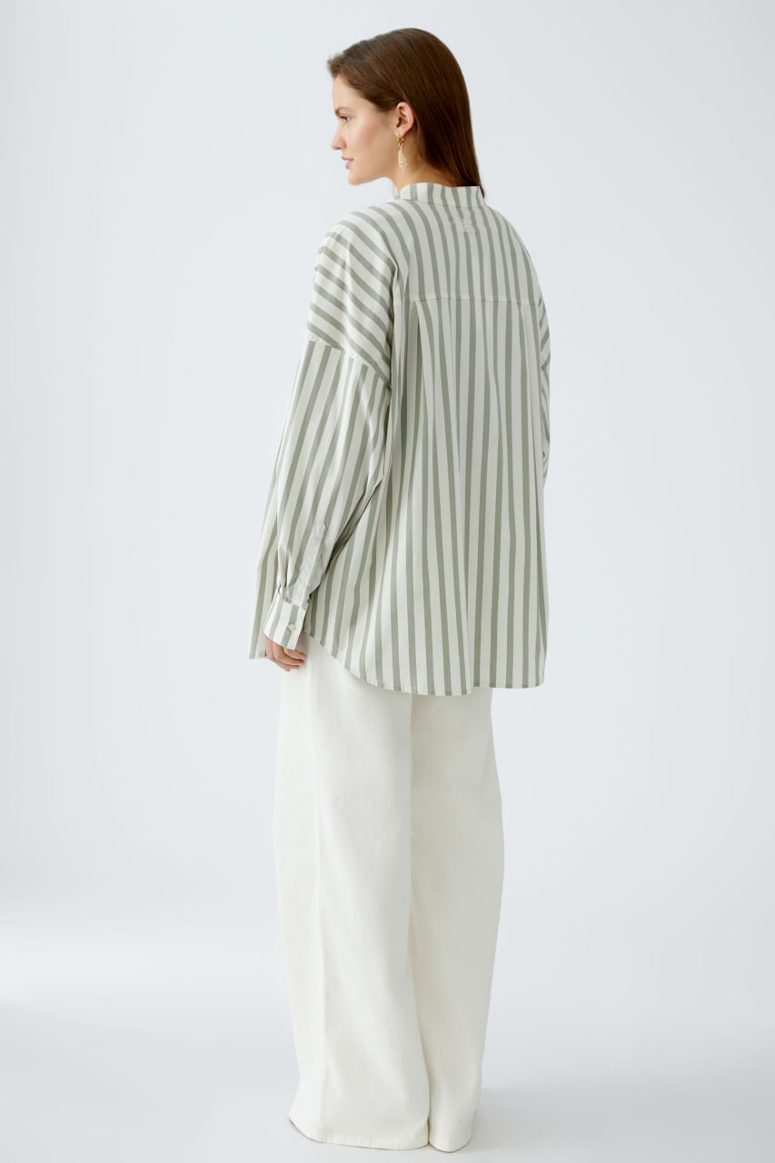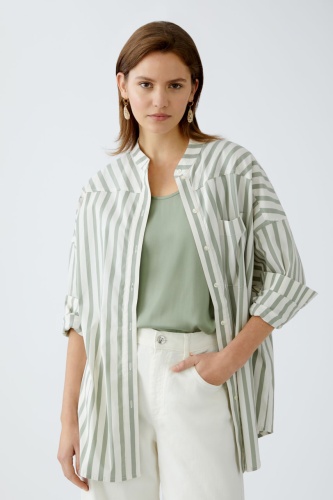 Непревзойденный комфорт обеспечивается мягкой хлопковой тканью с эластичными свойствами. Полосатый узор добавляет стильную нотку в классический дизайн. Свободный силуэт с удлинённым кроем создаёт модный и расслабленный образ. Особая фишка – удлинённая спинка, которая делает модель ещё более стильной.