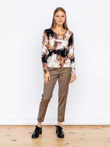 Брюки трендовой расцветки станут элементом капсульного гардероба, предполагают множество различных сочетаний. Длина до щиколотки, стрелки визуально увеличивают рост. Комфортная средняя посадка, замок-молния спереди, карманы спереди и один врезной карман с листочкой сзади.