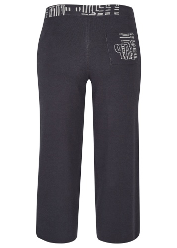 Укороченные брюки в спортивном стиле. Эластичный пояс обеспечивает комфортную посадку. Материал из смеси хлопка и вискозы приятен к телу и позволяет коже дышать.