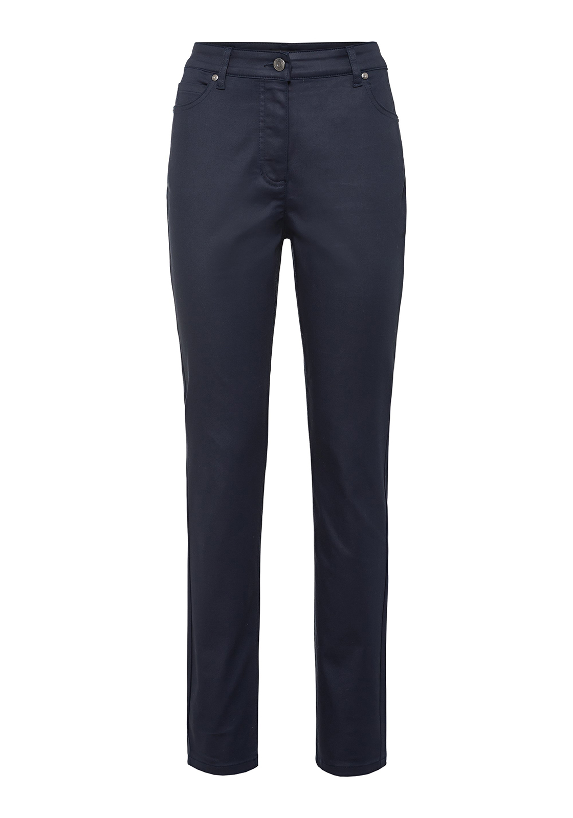 Зауженные однотонные брюки – базовый элемент гардероба. Высокая посадка обеспечивает комфортное ношение. Притачной пояс со шлевками, застежка на пуговицу и скрытую молнию.