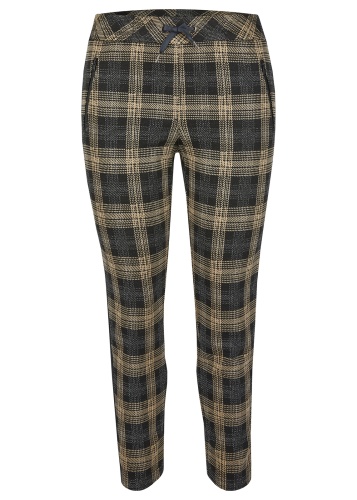 Брюки в крупную клетку силуэта slim. Притачной пояс с кулиской. Смесовый материал обеспечивает правильную посадку по фигуре и простоту ухода.