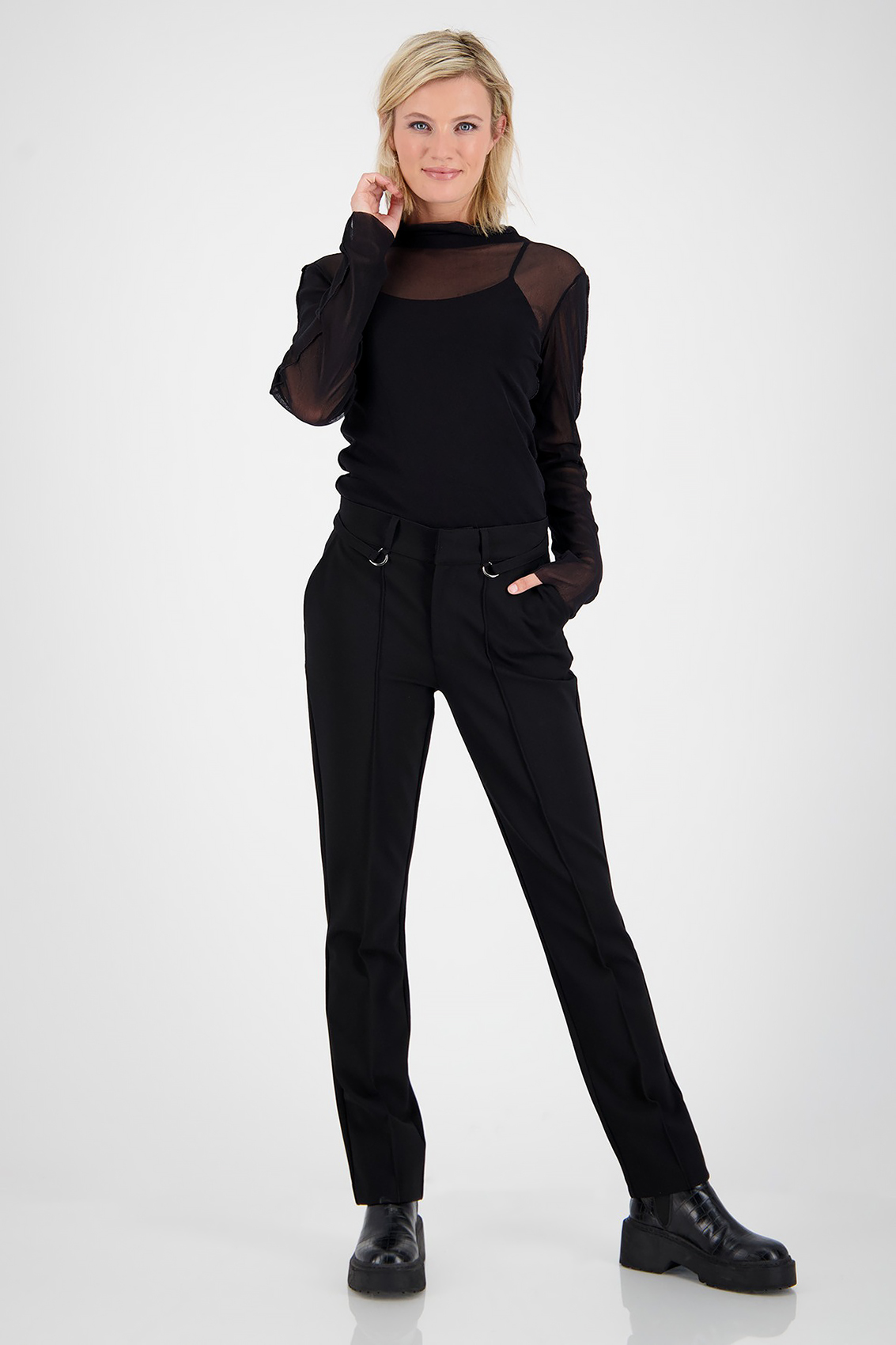 Черные брюки со стрелками – всегда актуальная классика, незаменимый атрибут гардероба каждой современной женщины. Средняя посадка и прямой крой делают брюки максимально комфортными в носке.