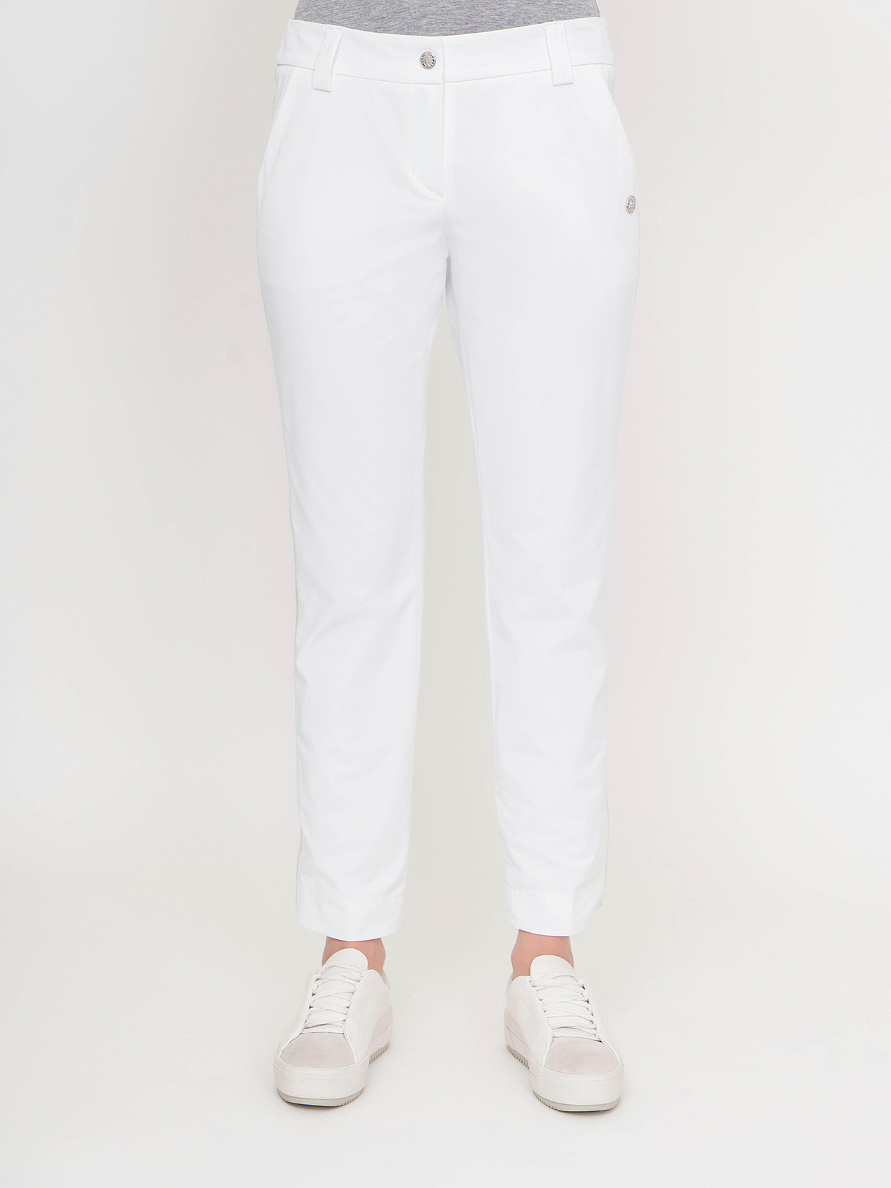 Светлые брюки - идеальный вариант для теплого сезона. Брюки средней посадки, прямого кроя. Декоративная тесьма по бокам, боковые карманы. Эта модель - универсальная пара для любого модного образа.