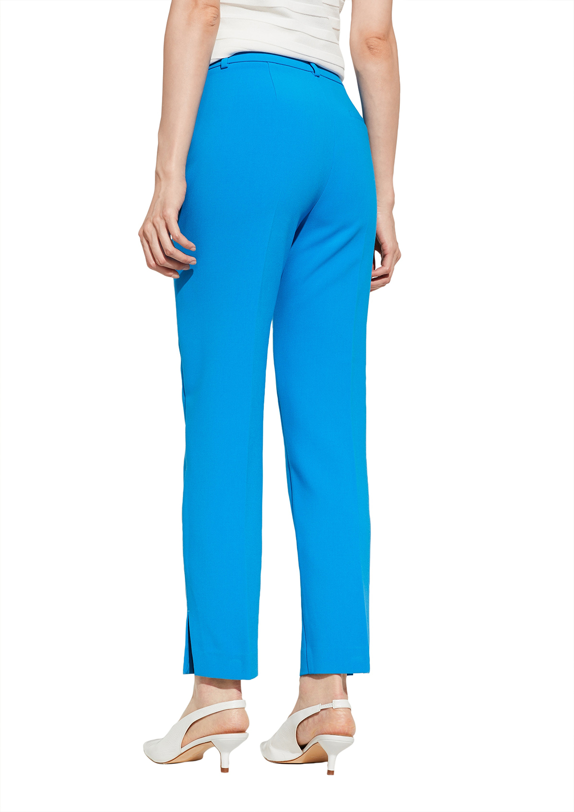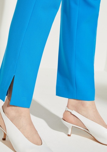 Однотонные брюки длиной 7/8. Идеальный вариант для создания яркого образа в деловом или повседневном городском стиле. Пояс со шлевками, застежка на скрытую молнию.
