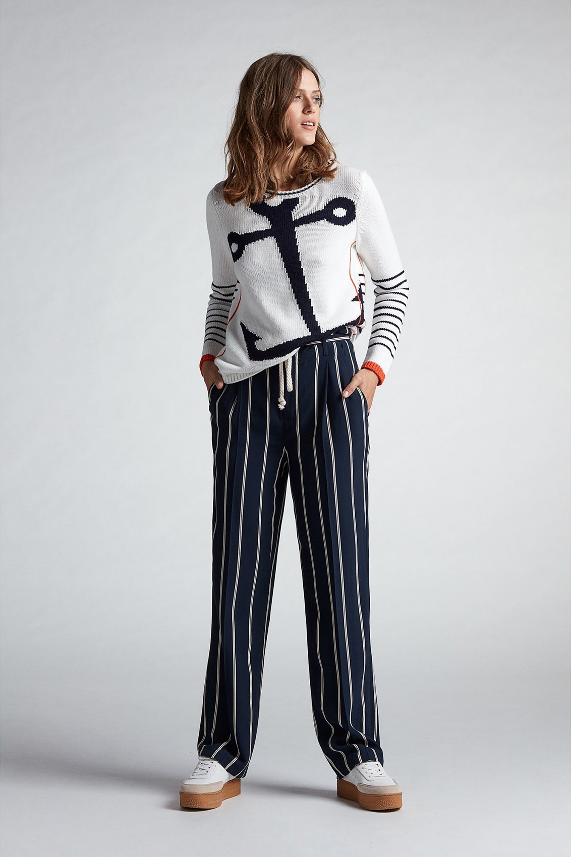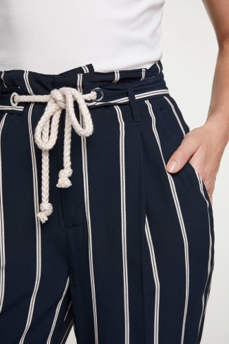 Для тех, кто скучает по морю! Модные широкие брюки средней посадки. Пояс с декоративным шнуром. Карманы. Трендовый принт в полоску визуально вытягивает силуэт. Вискозный материал приятен к телу и обеспечивает комфорт. Эти брюки - великолепная основа для множества стильных образов.