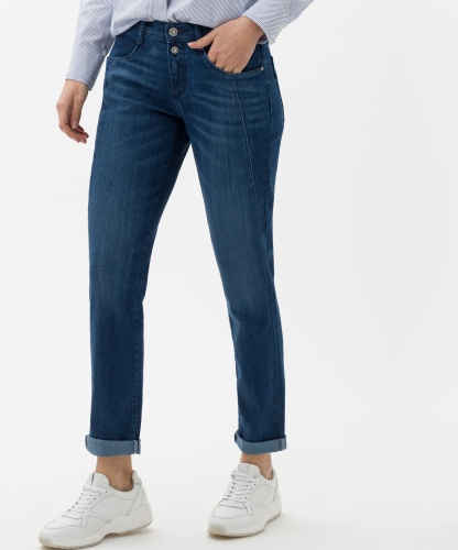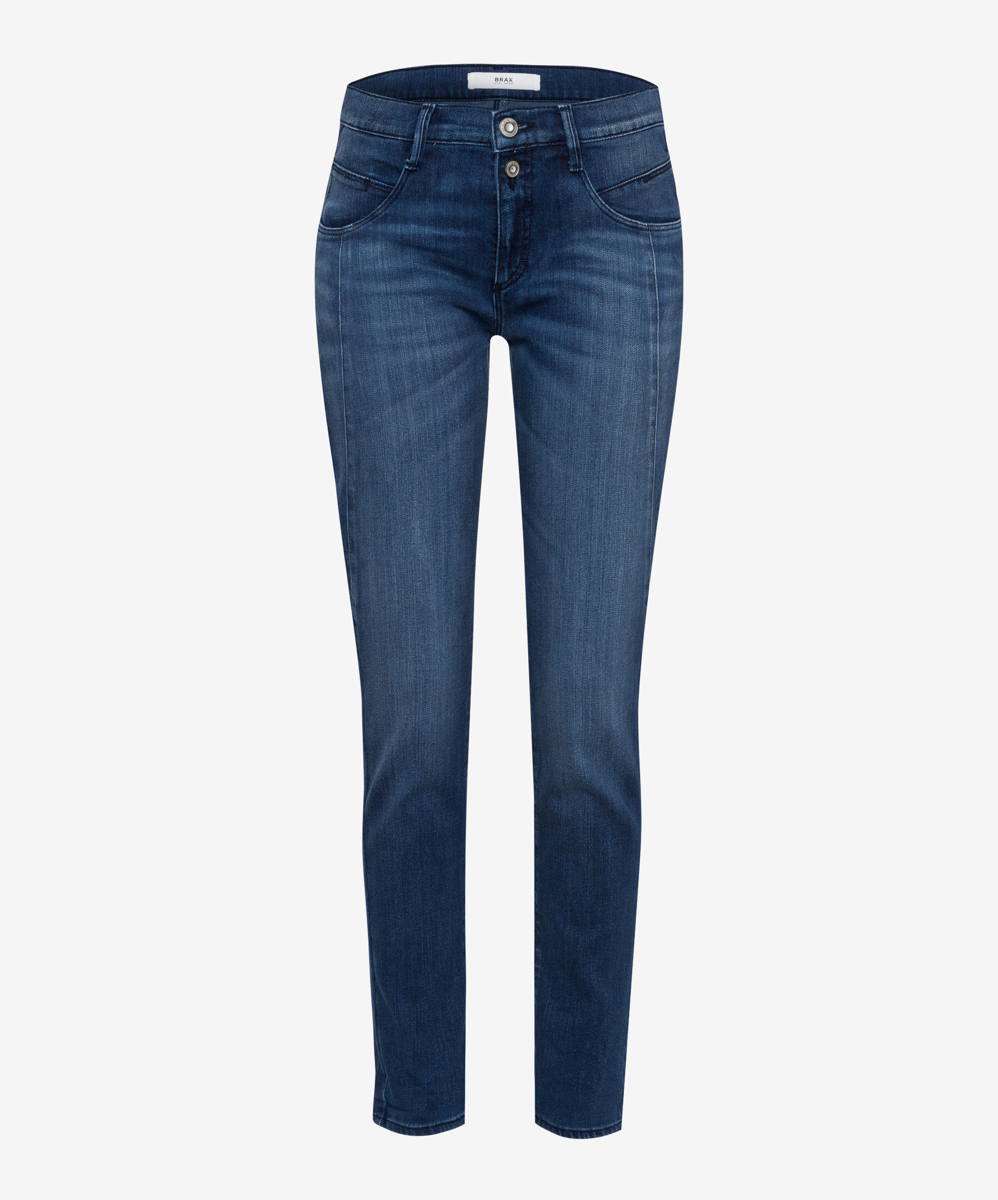 Однотонные джинсы силуэта слим с декоративными затертостями. Средняя посадка обеспечивает комфортное ношение. Пояс со шлевками, застежка на две пуговицы и скрытую молнию. Изогнутые внутренние карманы спереди и два накладных кармана сзади.
