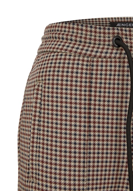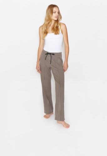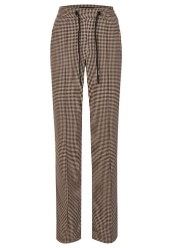 На сайте указаны российские размеры. Современные свободные брюки с модными декоративными швами. Легкая в уходе смесь материалов. Сплошной узор в клетку. Брюки удлиненные на шнурке.