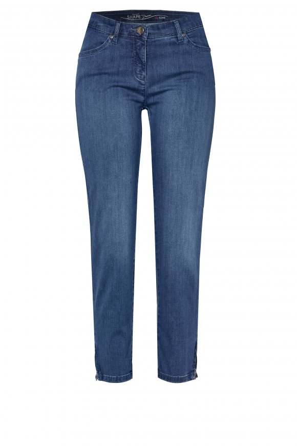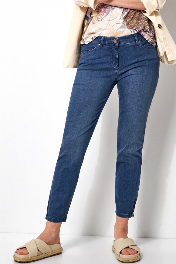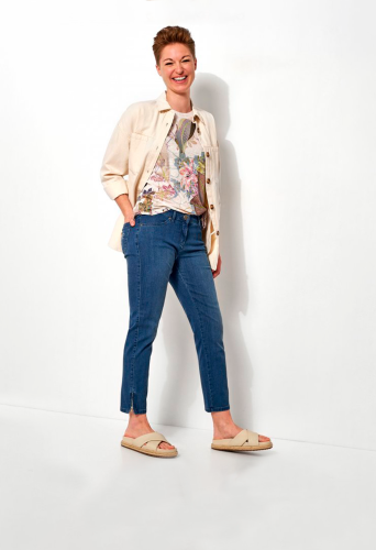 На сайте указаны российские размеры. Укороченные джинсы из летнего денима с эффектом шейпинга, тонкой вышивкой на задних карманах брюк и молниями по подолу. Низкая посадка. Рост модели 172 см.
