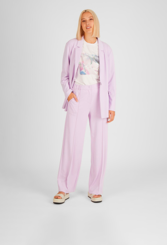 На сайте указаны российские размеры. Однотонные брюки впечатляют своим элегантным видом. Благодаря широкому крою брюки удобны в носке, а декоративные швы завершают образ. Внутренний шов в размере 44: 78 см. Рост модели 176 см.
