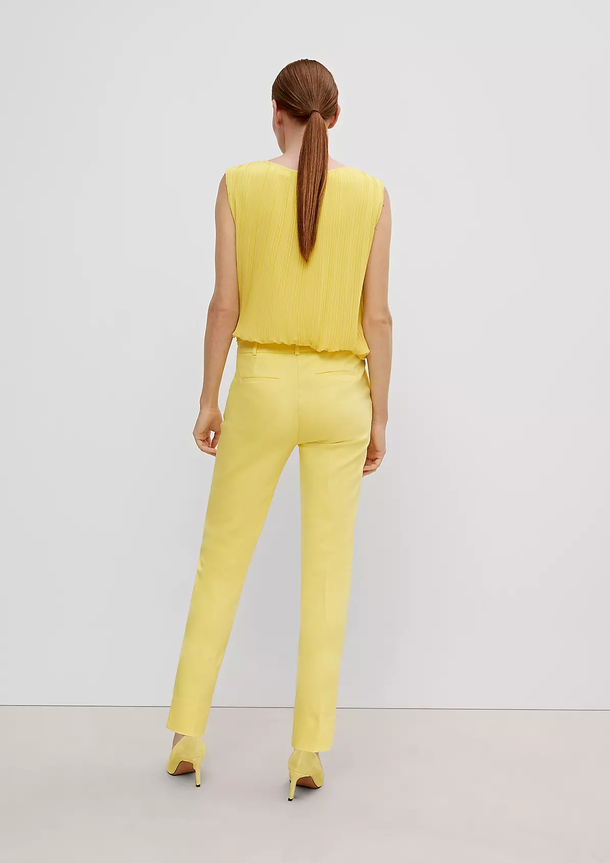 На сайте указаны российские размеры. Длина штанины по внутренней стороне для размера 42 около 72 см. Рост модели 180 см.