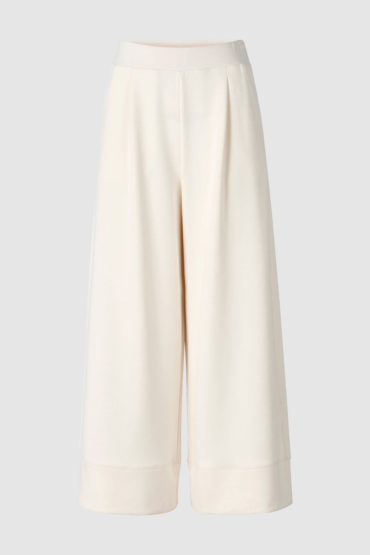 Эти брюки-кюлоты благодаря приятному мягкому материалу выглядят убедительно непринужденно. Эластичный пояс обеспечивает комфорт. Два боковых кармана и накладные карманы сзади подчеркивают свободный крой. Пришитая тесьма по краю красиво привлекает внимание.