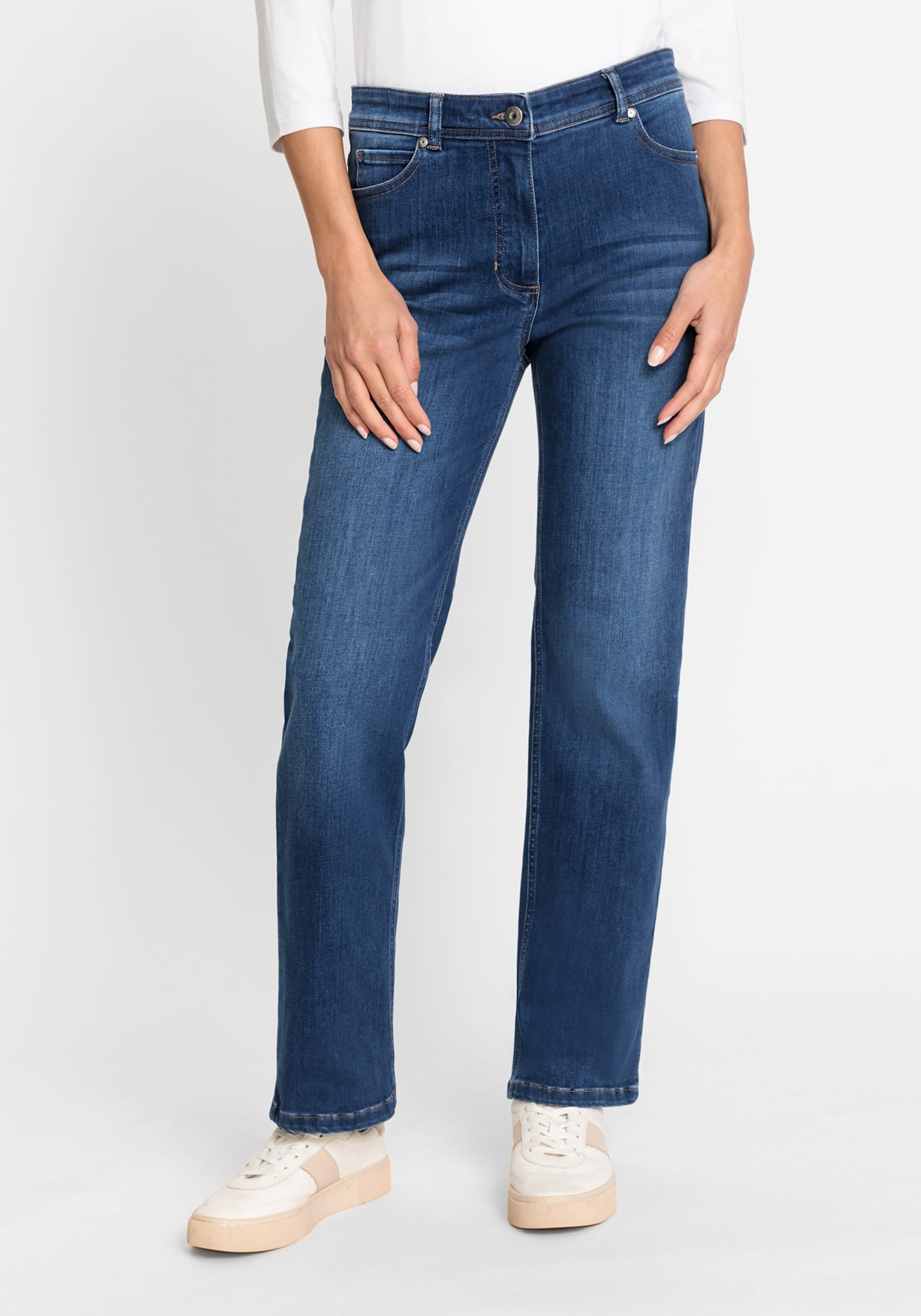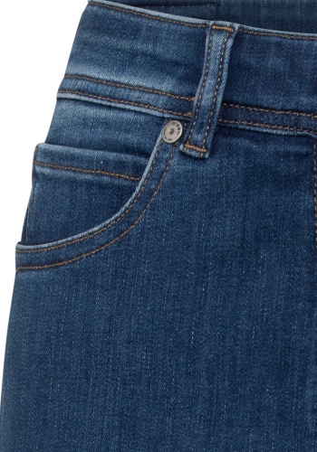 Классический крой с пятью карманами в современном исполнении благодаря нежной потертости и стильному подвороту, который выглядит актуально. Задние карманы украшены вышивкой, а эластичный материал обеспечивает удобство ношения в течение всего дня. Наш крой Mona не сковывает движений бедер и располагается прямо на естественной линии талии, удлиняя ноги.