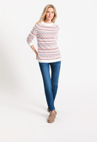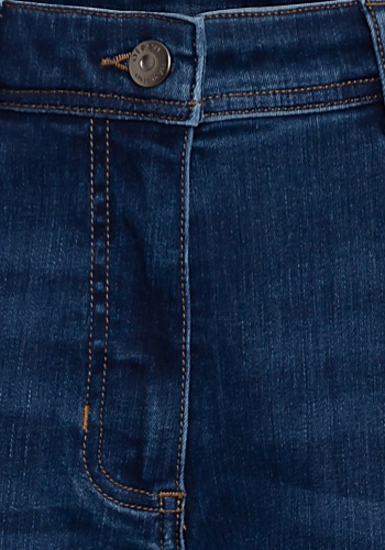 Джинсы из темного денима с легким эффектом стирки имеют классический джинсовый дизайн с пятью карманами и вышитыми задними карманами. Они сидят прямо на естественной линии талии, удлиняя ноги и обеспечивая свободную посадку в области бедер.
